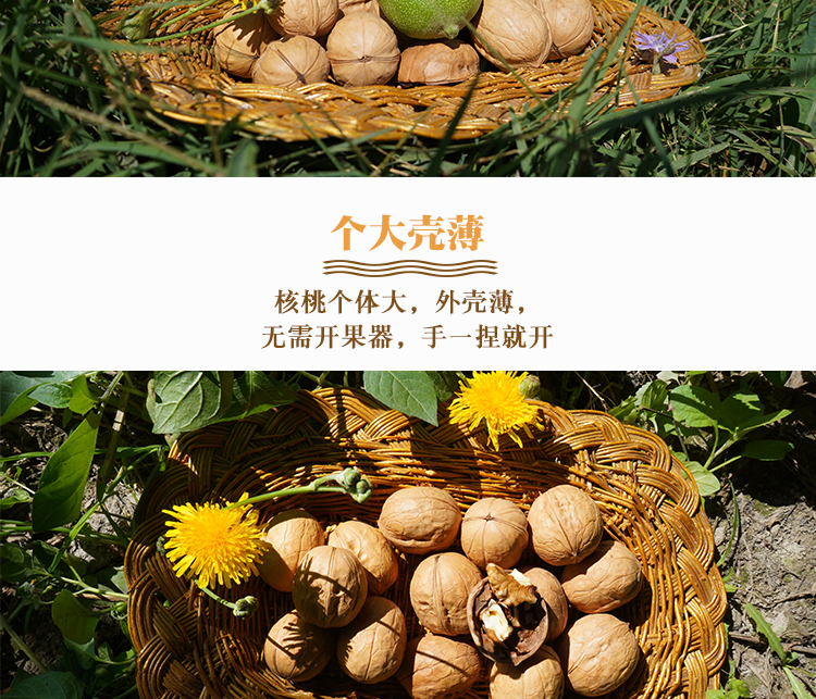 源自優(yōu)質(zhì)核桃產(chǎn)區(qū),清水清洗,天然晾曬,核桃外皮光滑干凈,殼薄易撥,果仁飽滿,因由雪水澆灌,加以日照充足,果肉不但不澀,細(xì)品有一股淡淡的清甜,是核桃中的佳品。