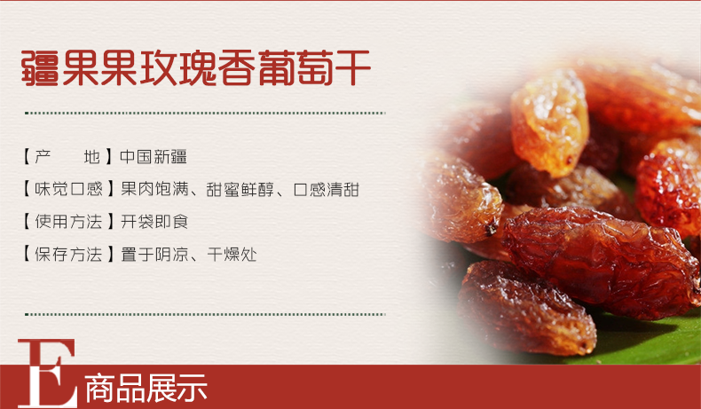 商品名稱:新疆 喀什 疆果果 玫瑰香葡萄干260g/袋 葡萄干