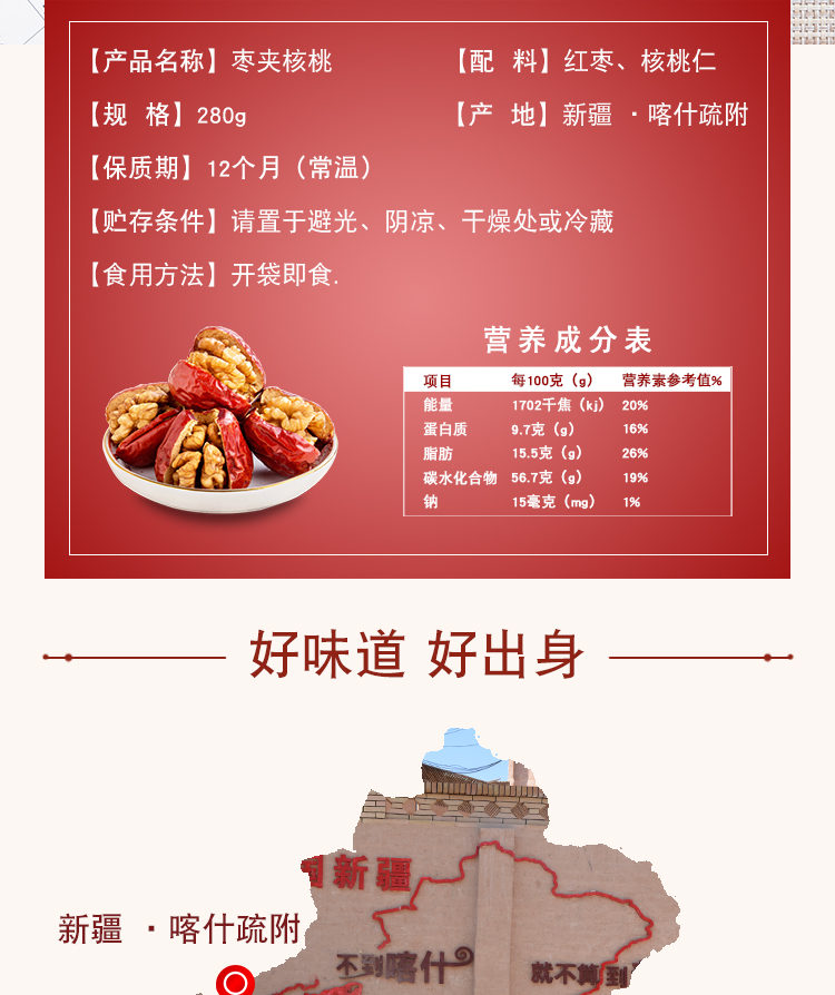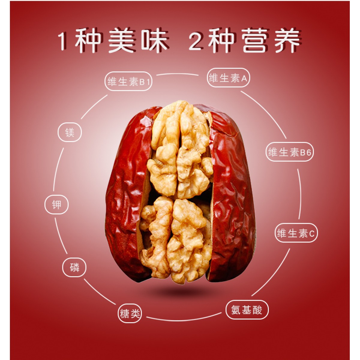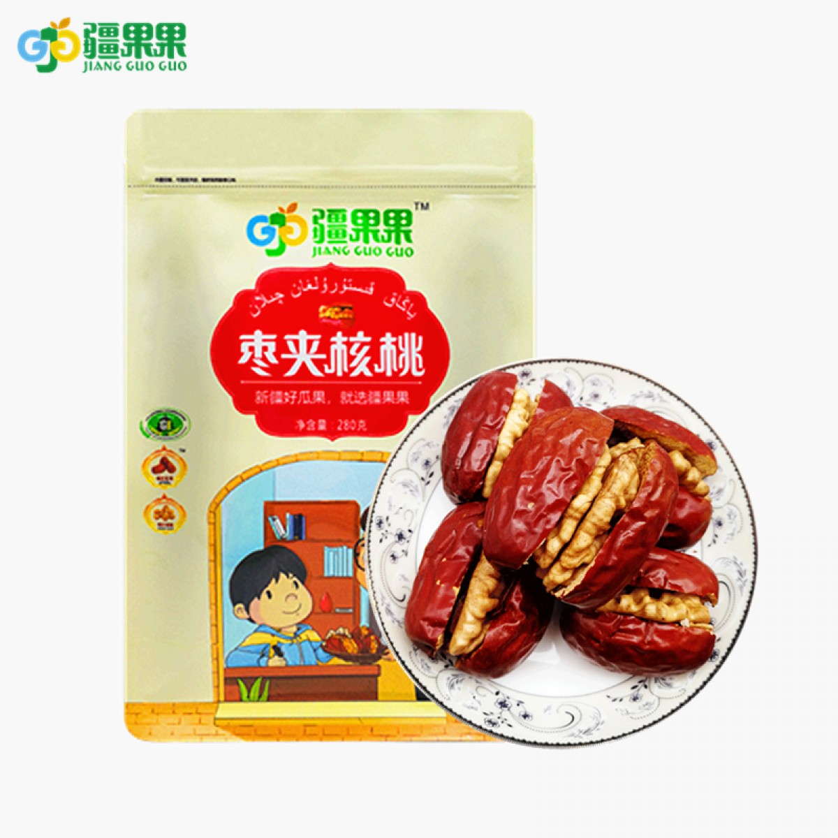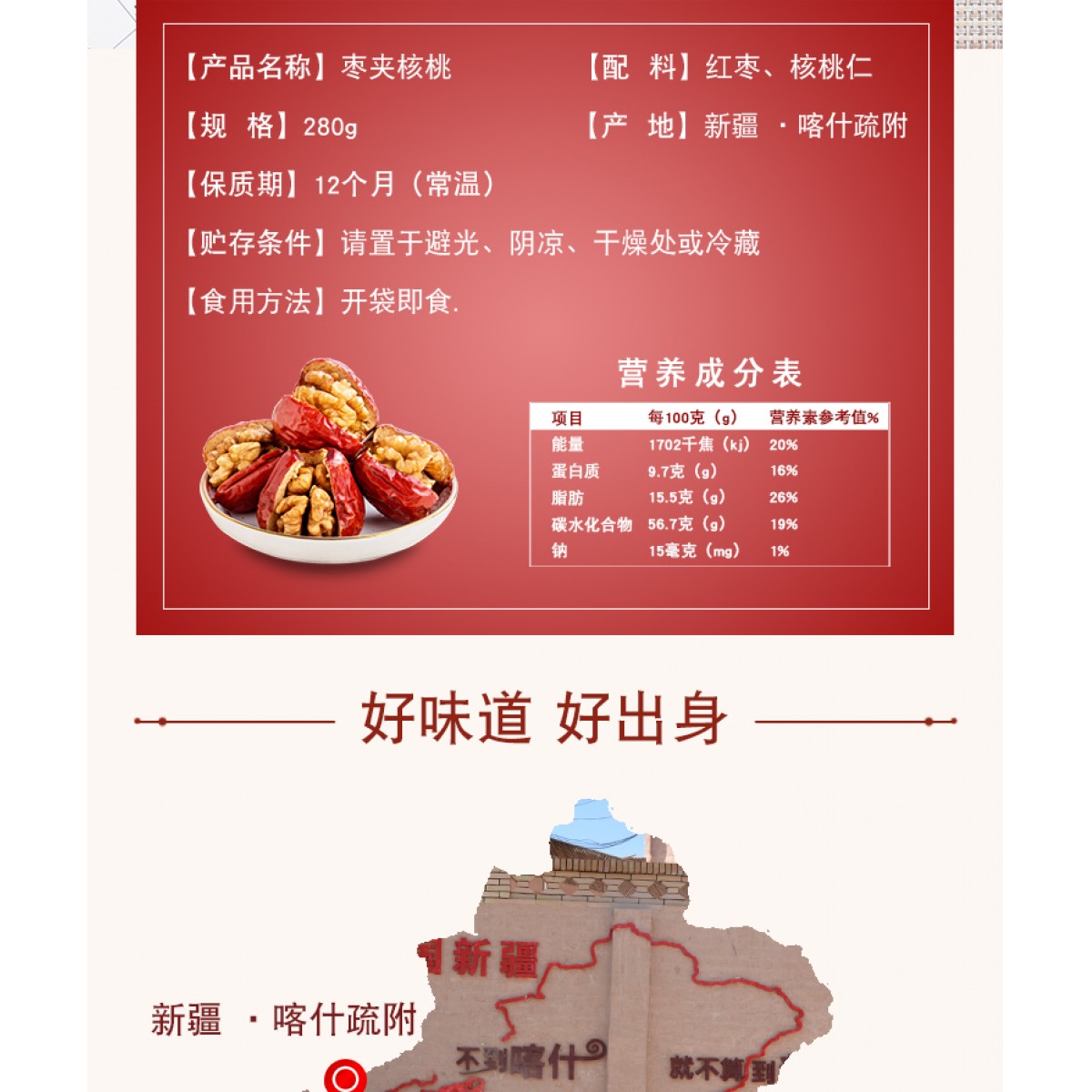 商品名稱:新疆 喀什 疆果果 棗夾核桃280g/袋 棗與核桃