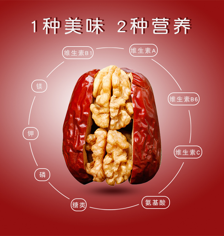 棗夾核桃臻選厚實(shí)棗肉,新鮮核桃仁,將紅棗的甜糯與核桃的香酥完美融合,美味升級(jí),營(yíng)養(yǎng)多樣,誘人的色澤,飽滿的肉質(zhì),吃起來超過癮;獨(dú)立包裝,便于攜帶,忘吃早餐來兩顆,提升活力來兩顆