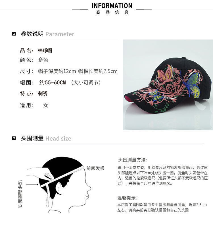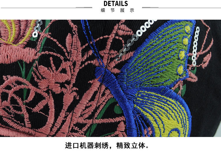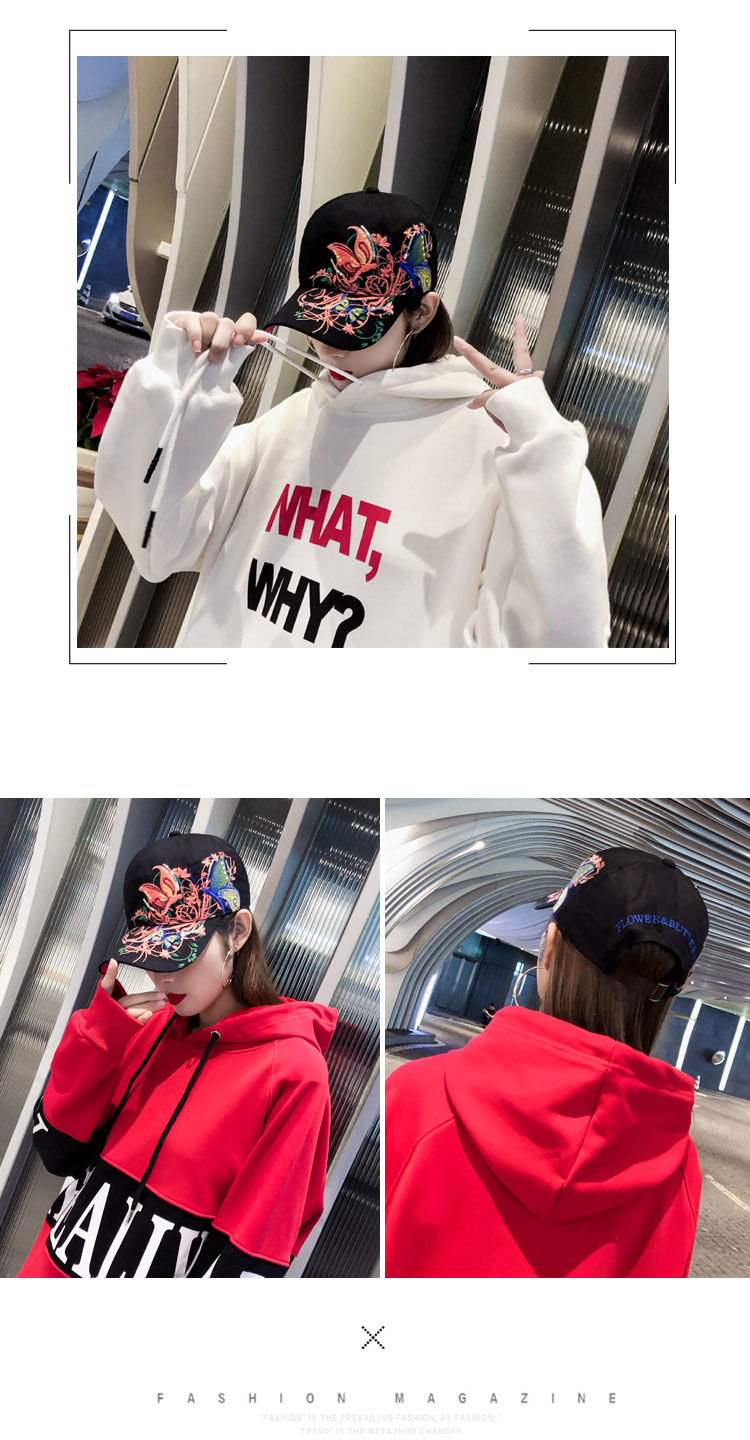 商品名稱:帽子女春秋韓版百搭鴨舌帽刺繡黑色民族風(fēng)遮陽帽休閑嘻哈棒球帽