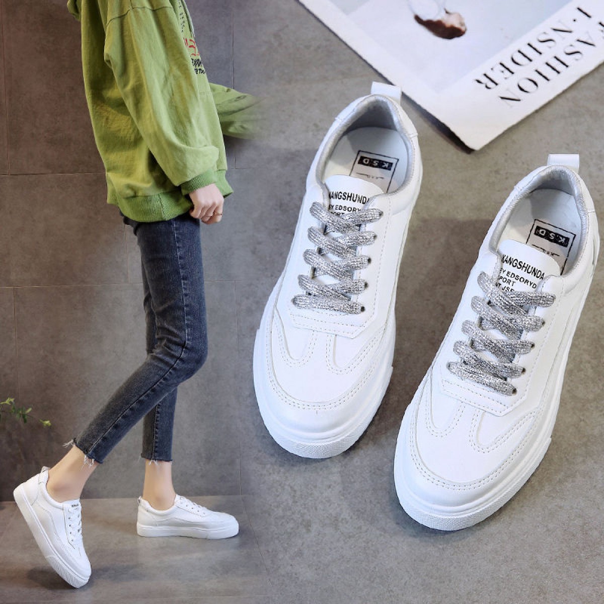 商品名稱(chēng):2020春夏新款小白鞋女百搭女鞋韓版系帶學(xué)生鞋平底鞋運(yùn)動(dòng)休閑板鞋