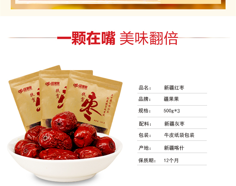 商品名稱:新疆 喀什 疆果果扶貧棗500g*5/袋 紅棗