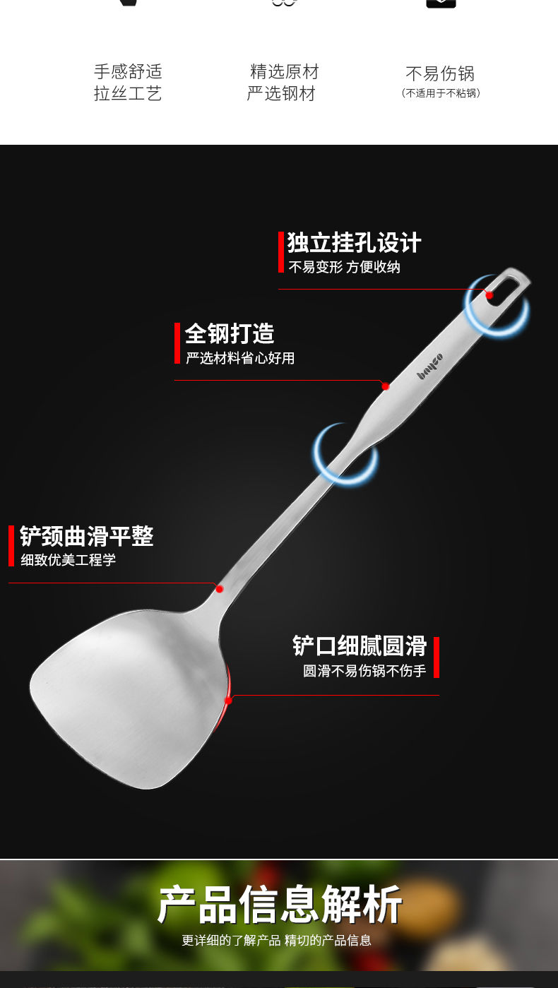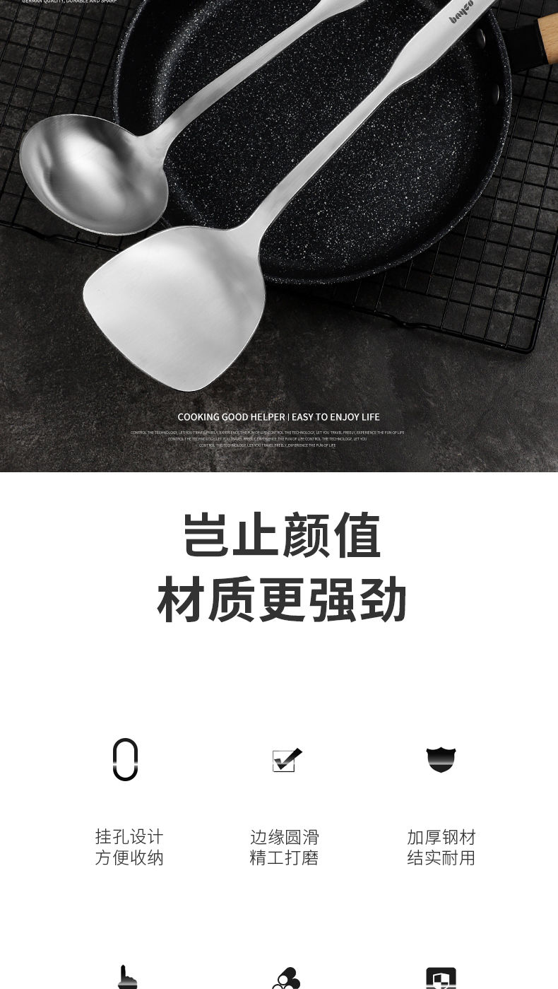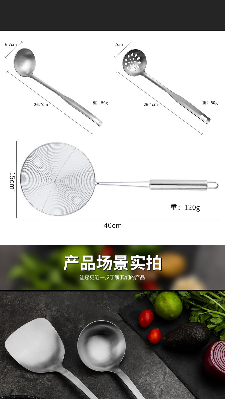 商品名稱:鍋鏟炒菜鏟子廚房廚具套裝不銹鋼家用湯勺大號勺子喝湯漏勺過濾網