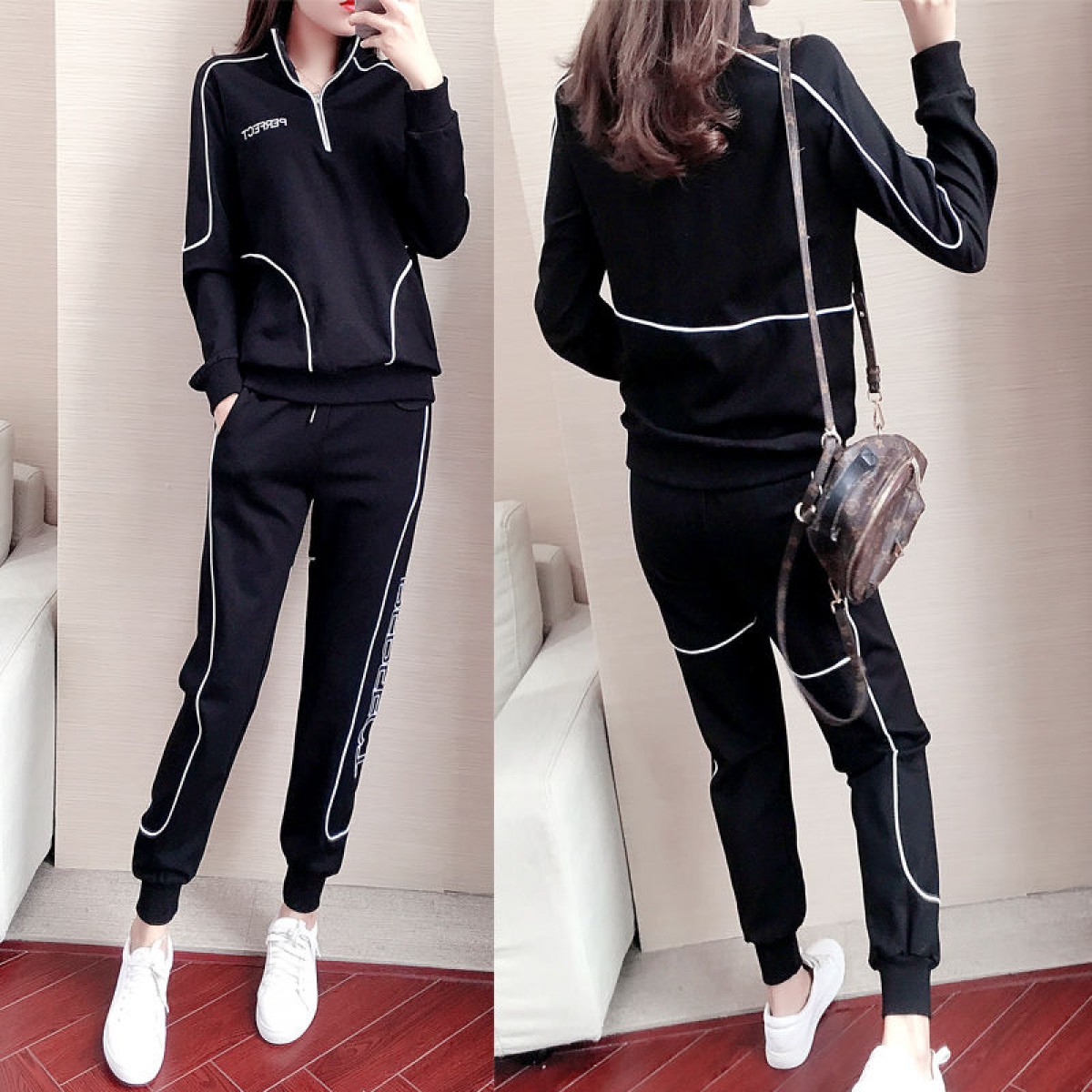 商品名稱:春季套裝女運動服套裝女2020新款時尚休閑套裝女顯瘦兩件套情侶裝
