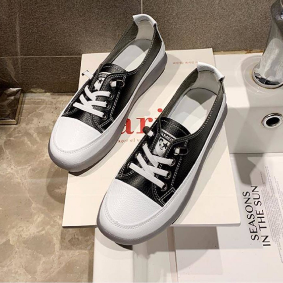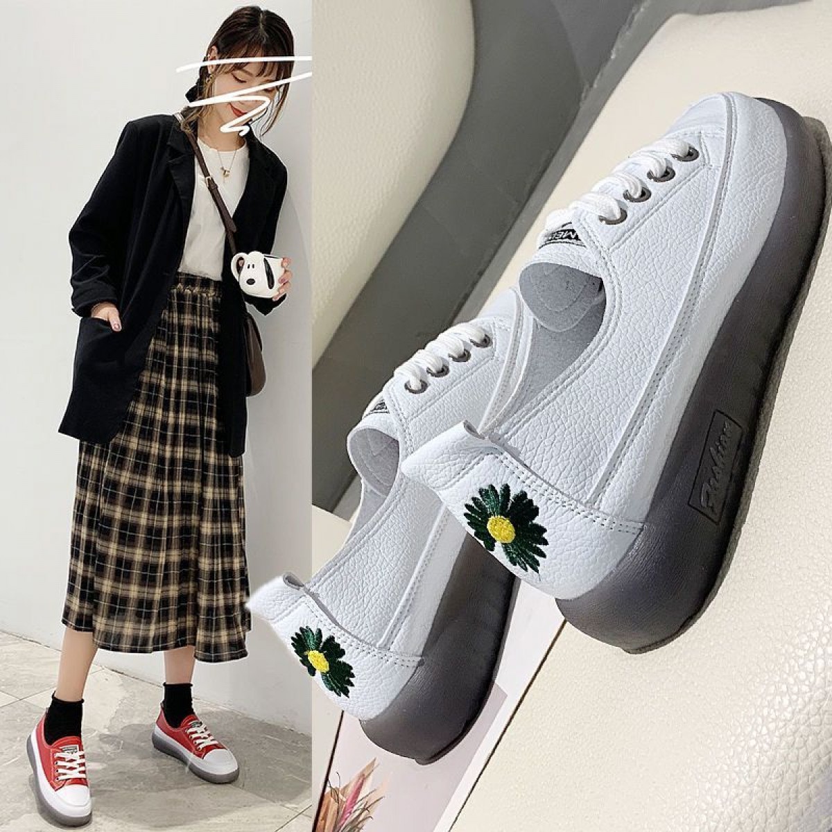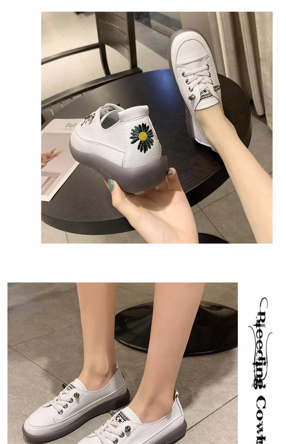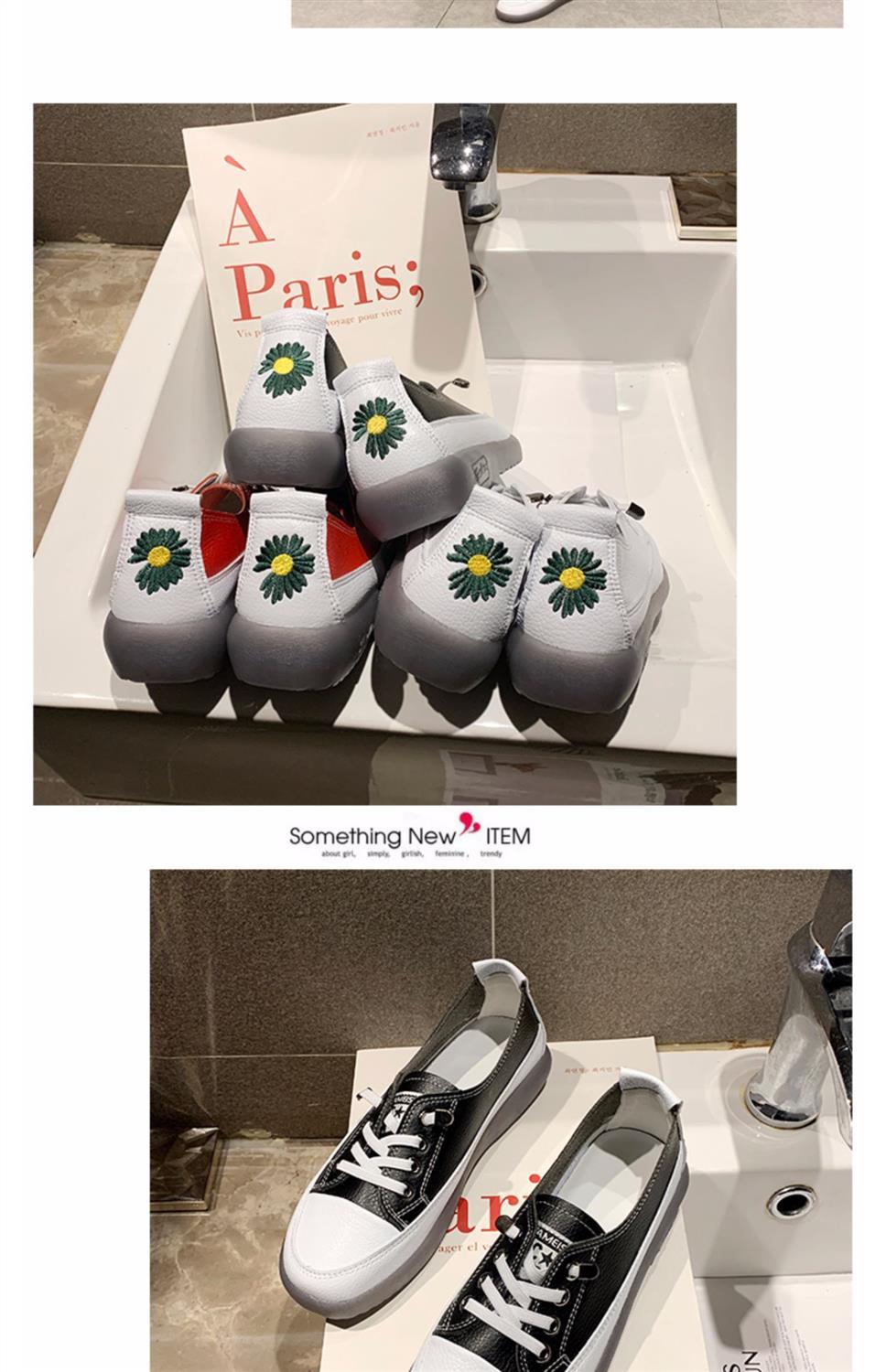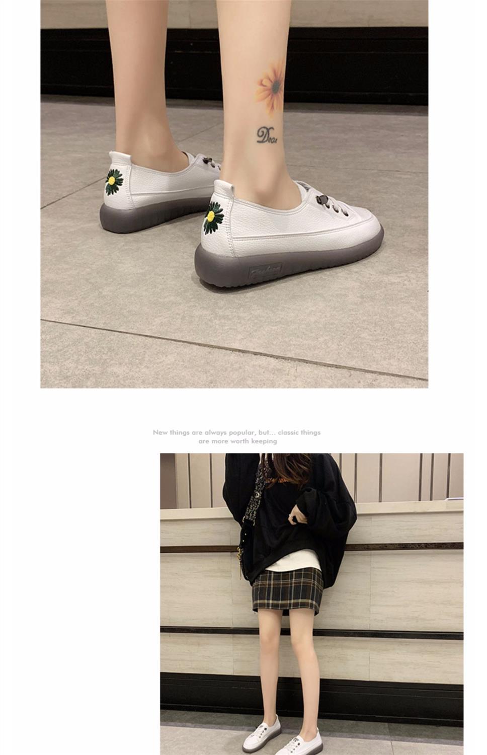 商品名稱:真軟皮牛筋底一腳蹬女春季平底淺口單鞋百搭小雛菊學(xué)生皮鞋