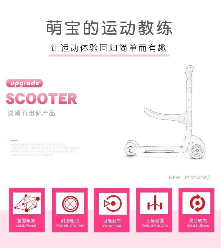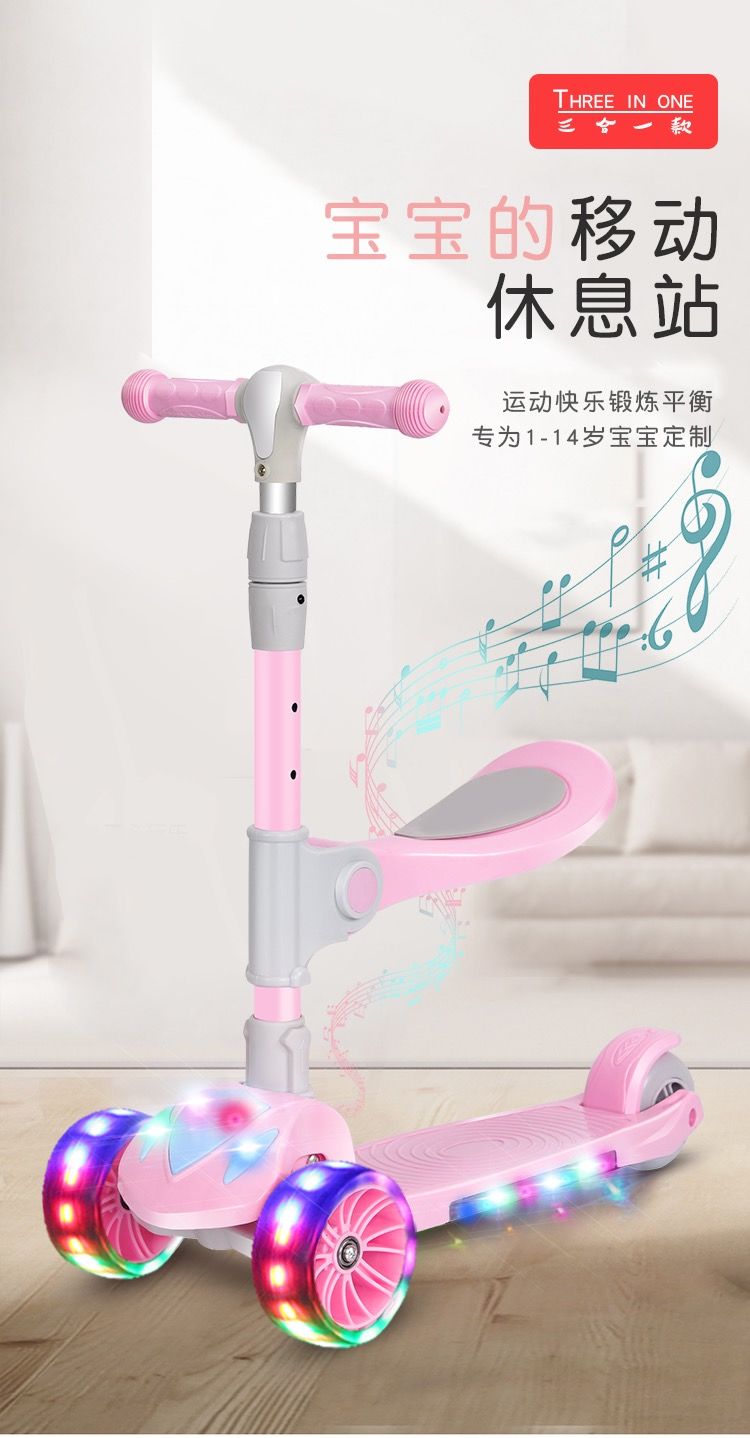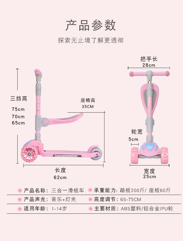 商品名稱:滑板車兒童1-3-6-12歲可坐小孩踏板車三合一滑滑男女孩寶寶溜溜車