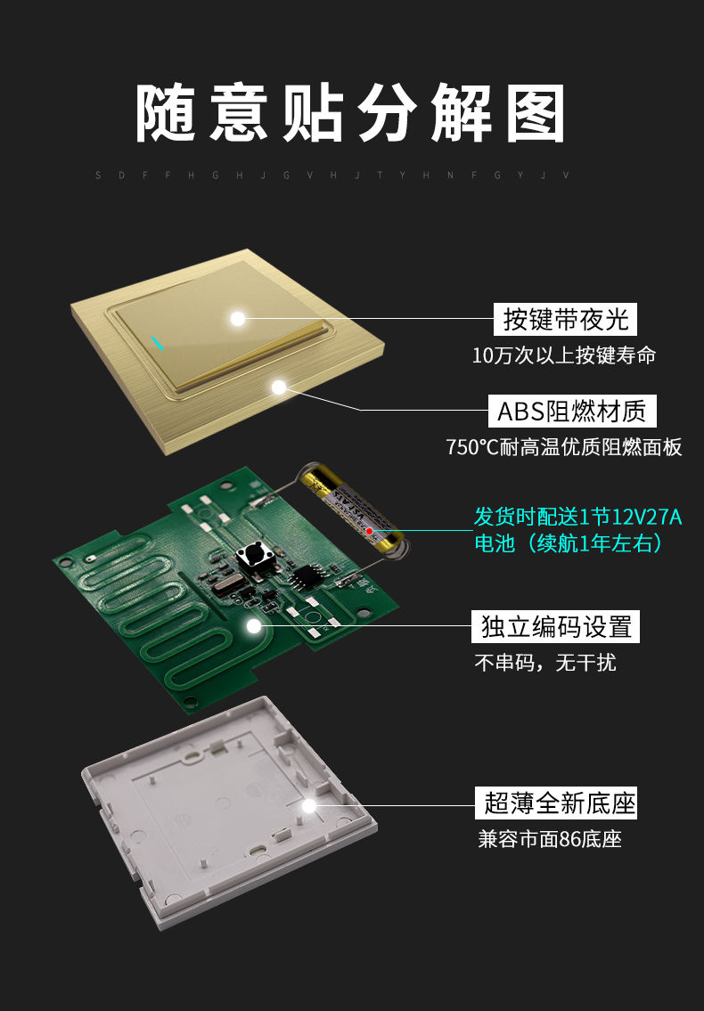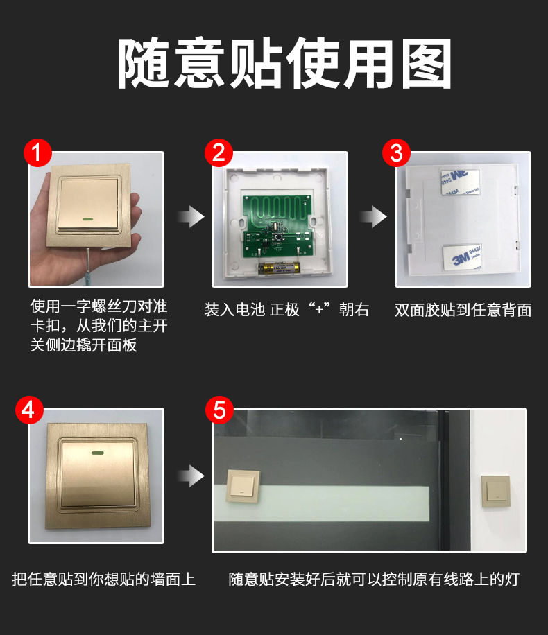 商品名稱:遙控開關(guān)面板無線雙控開關(guān)免布線智能雙控?zé)艟?20v單路86型隨意貼