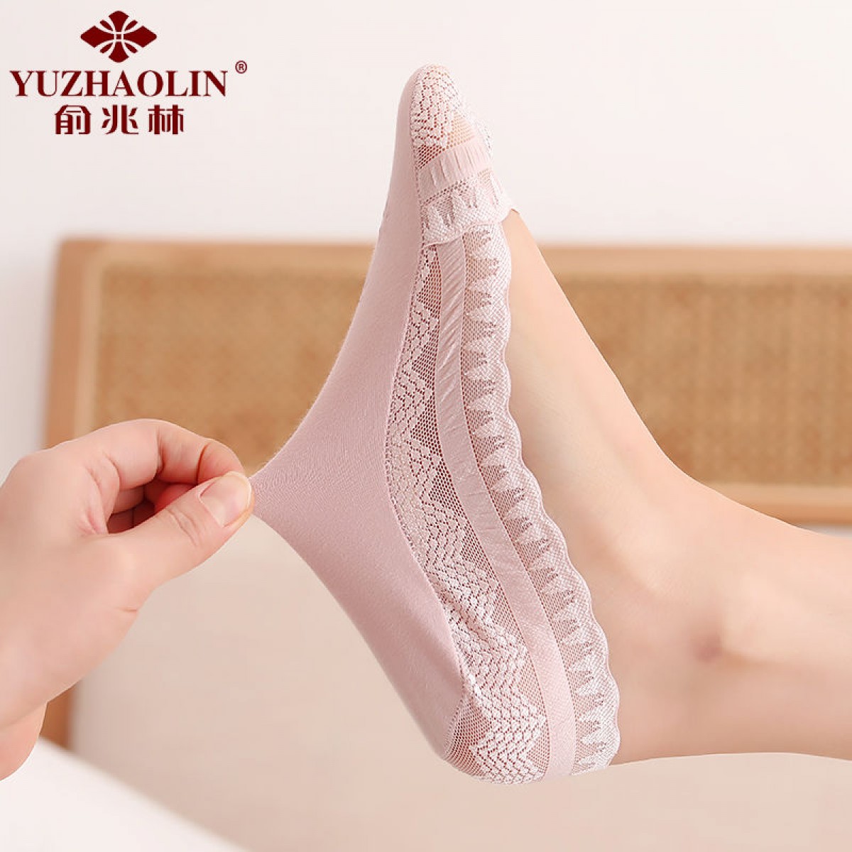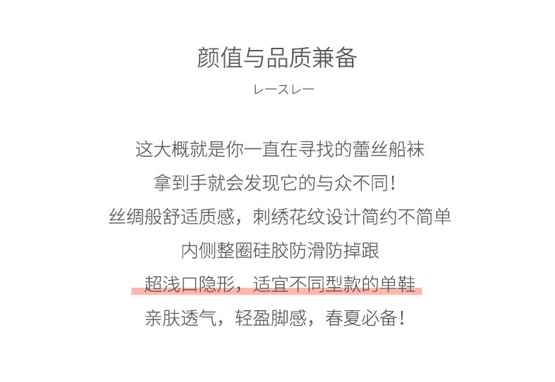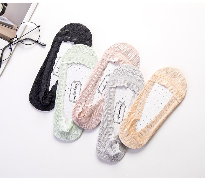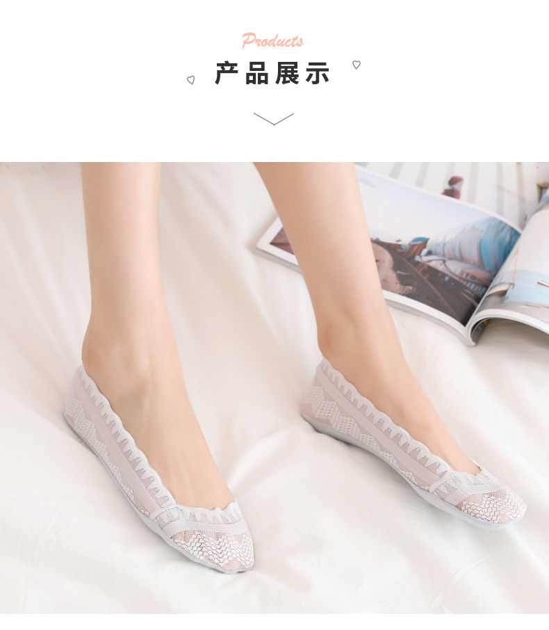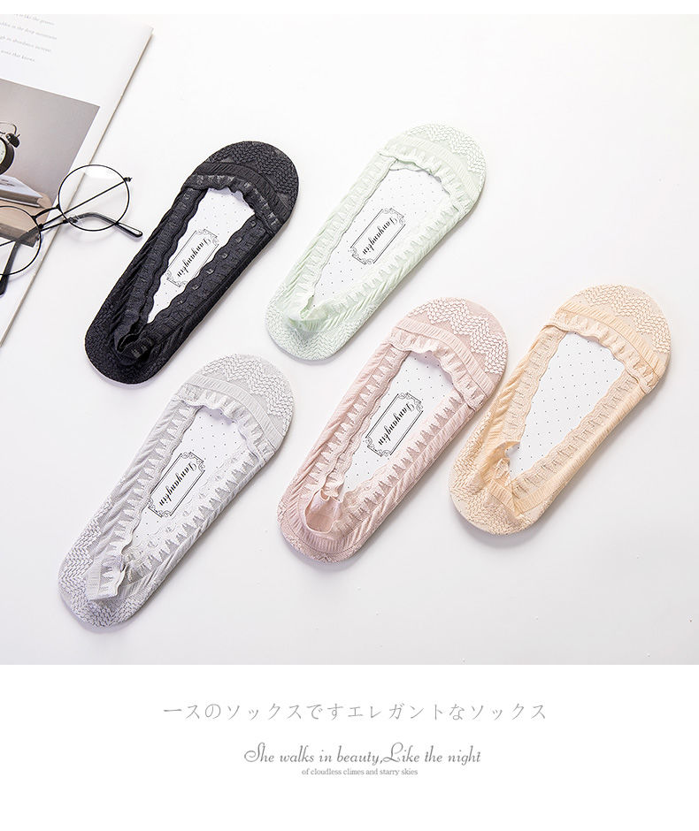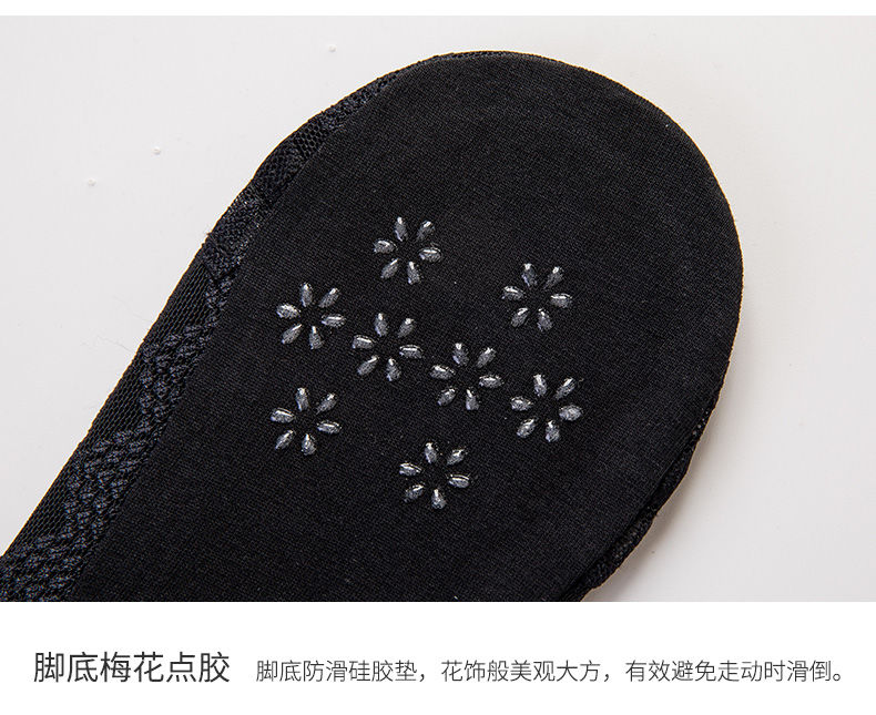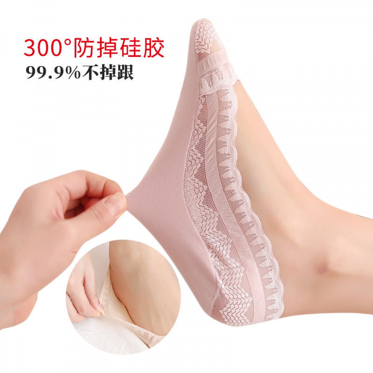 商品名稱:襪子女夏季薄款淺口船襪隱形襪蕾絲純色棉底冰絲硅膠防滑襪