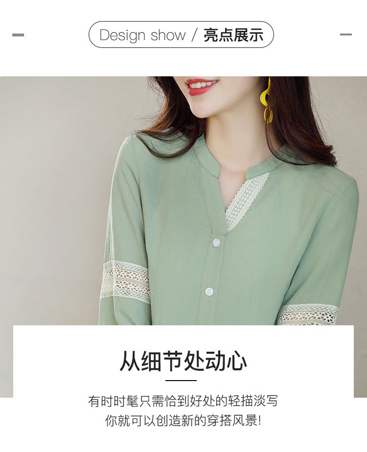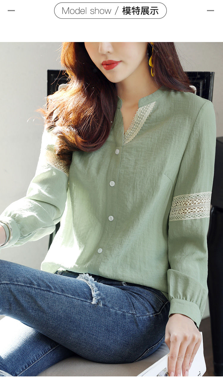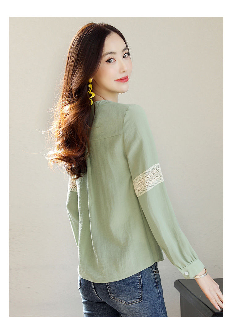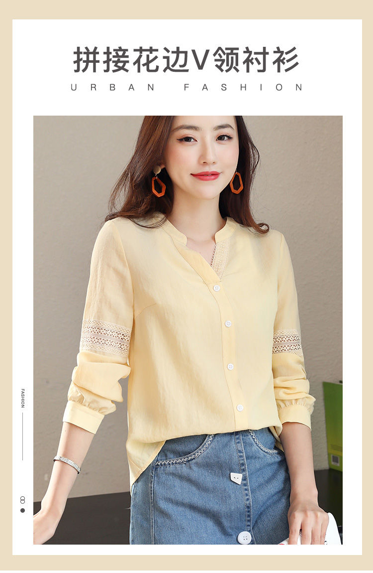 商品名稱:2020年春季新品女款韓版時(shí)尚百搭甜美拼接花邊V領(lǐng)襯衫