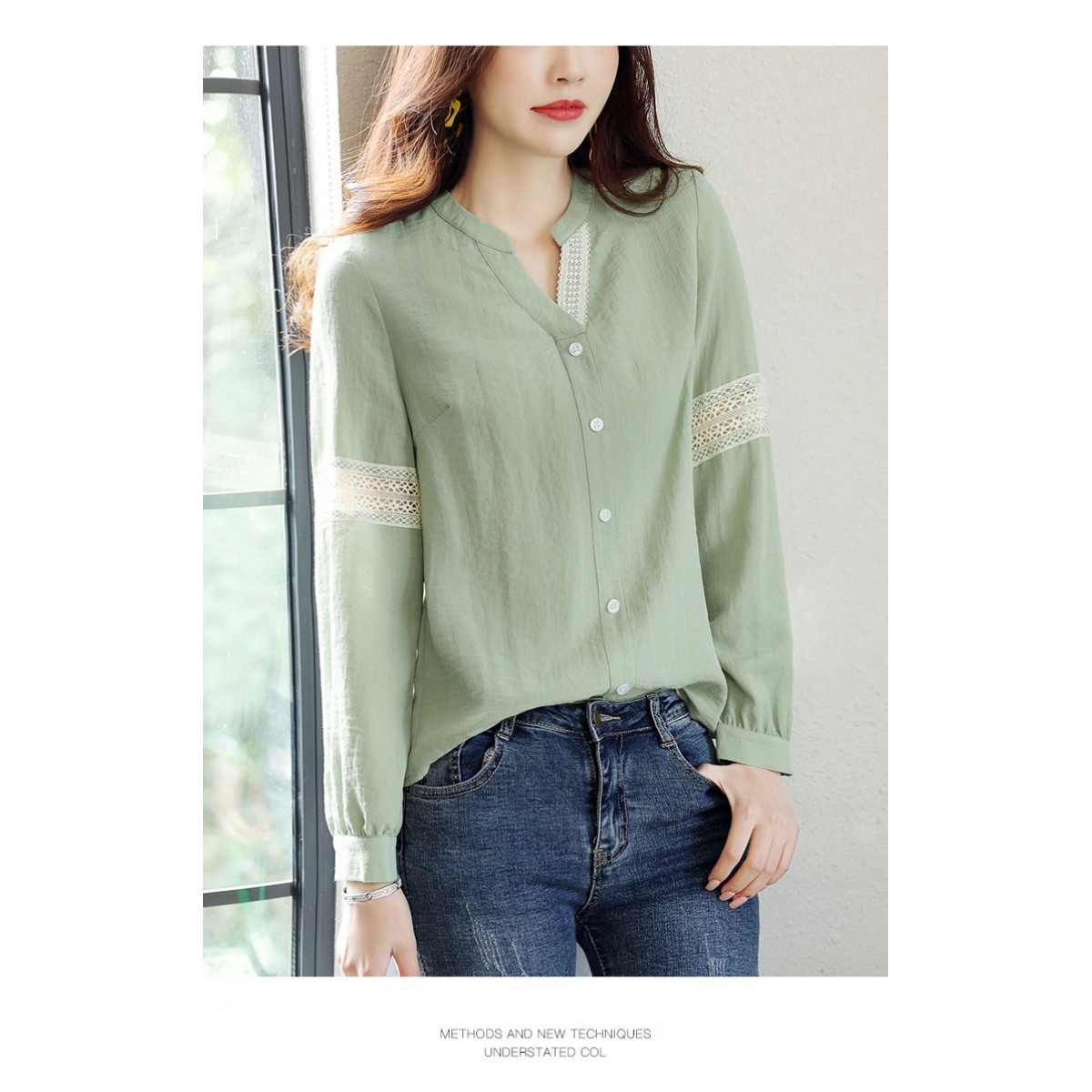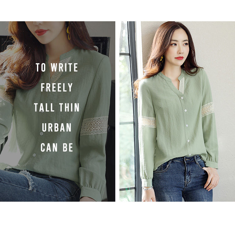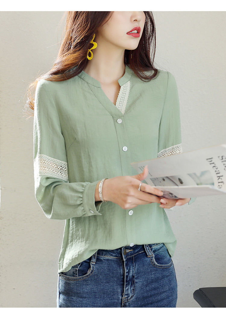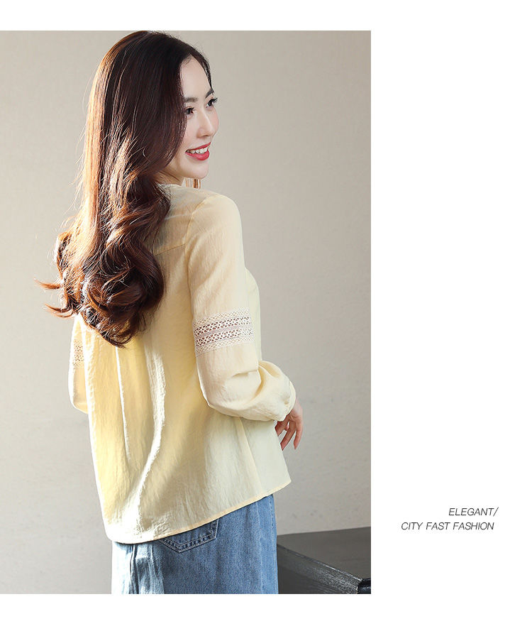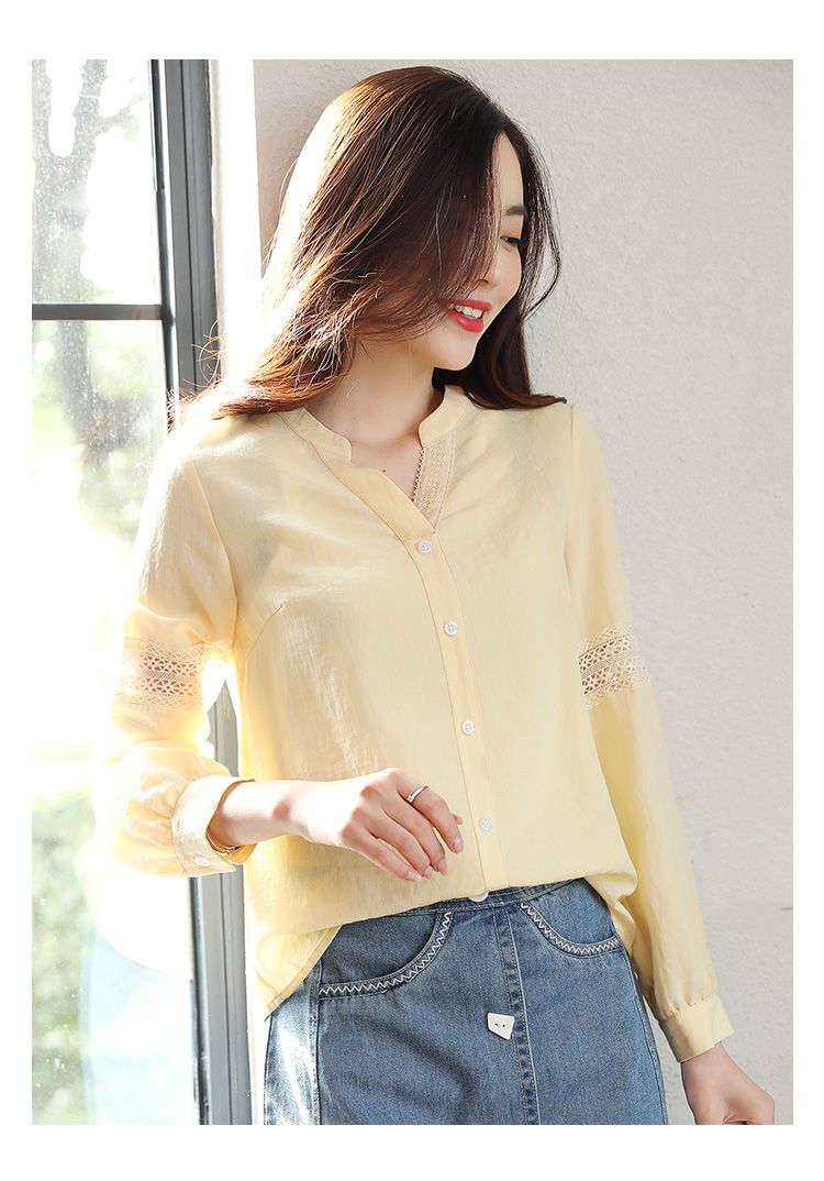 商品名稱:2020年春季新品女款韓版時(shí)尚百搭甜美拼接花邊V領(lǐng)襯衫