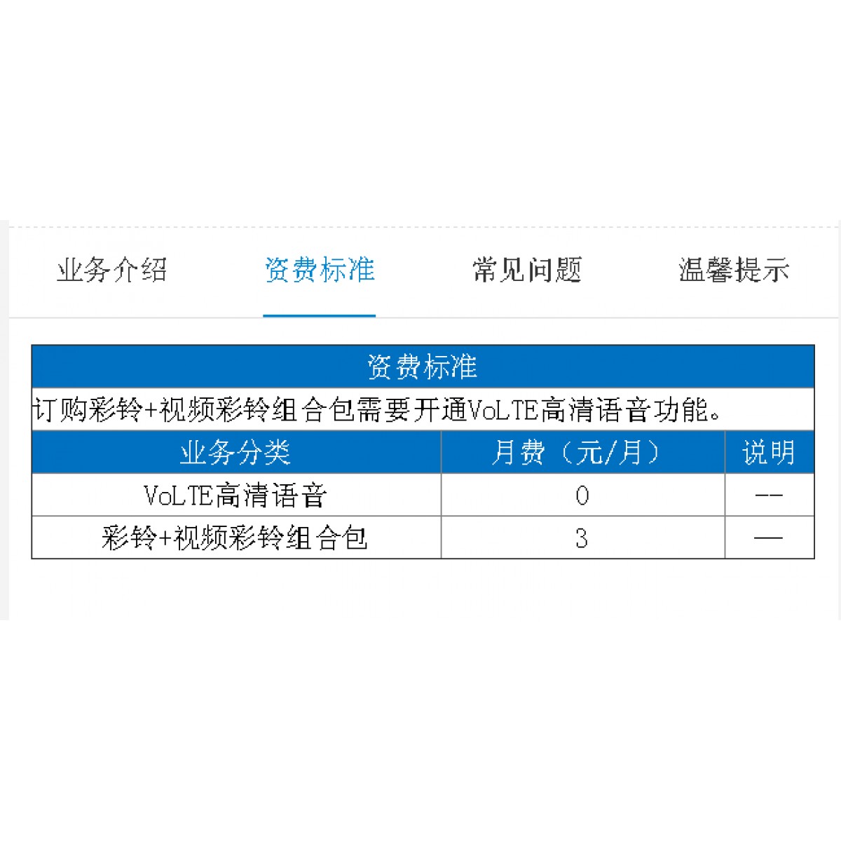 商品名稱:中國移動(dòng) 彩鈴+視頻彩鈴組合包(3元/月)