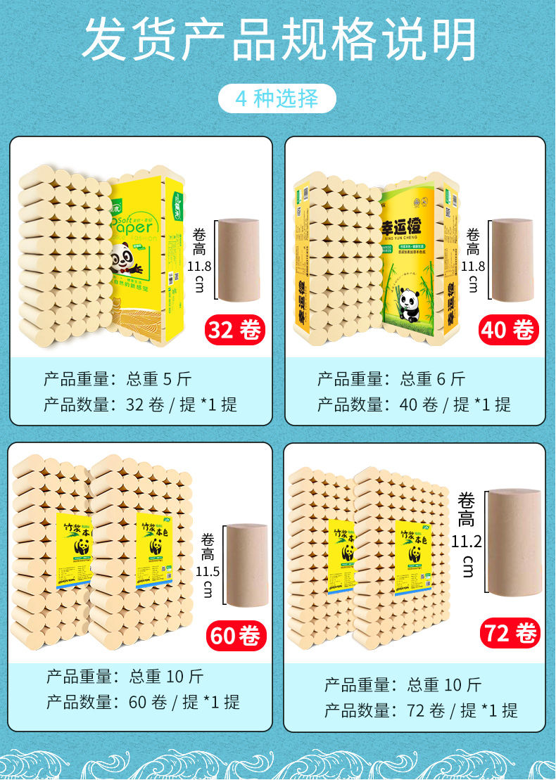 商品名稱:【32卷巨量裝】臻木竹漿本色衛(wèi)生紙巾卷紙批發(fā)家用卷筒紙廁