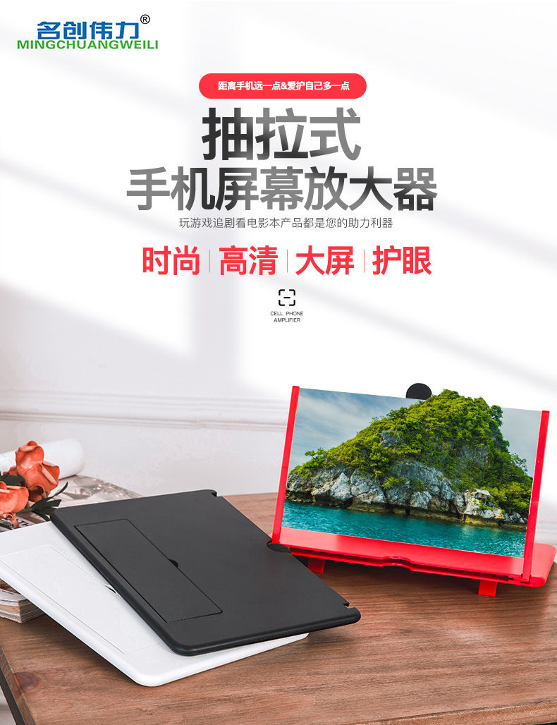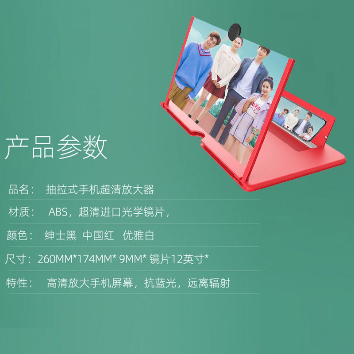 商品名稱:多功能12寸手機屏幕放大器超清3D投影華為oppo高清手機支架抽拉式