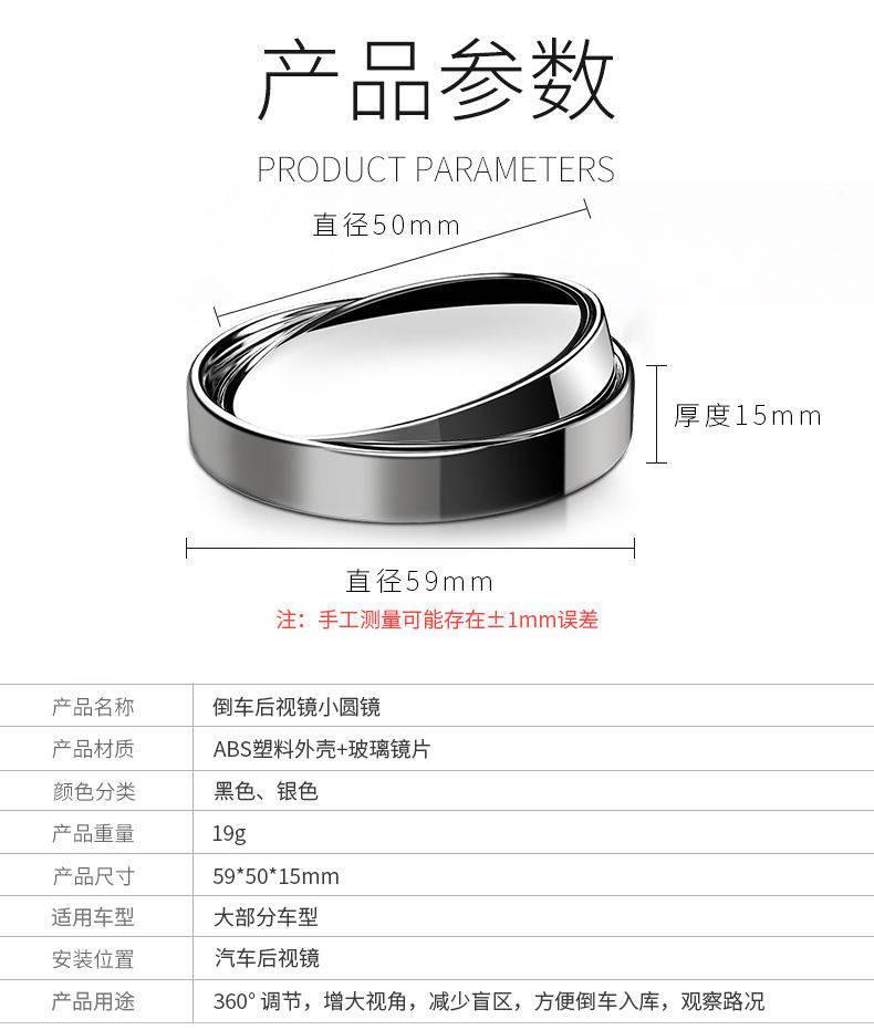 商品名稱:汽車后視鏡小圓鏡玻璃360度可調(diào)超清無邊輔助倒車鏡反光鏡盲點鏡