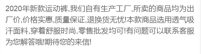 商品名稱:2020年春夏季學生女運動褲休閑百搭束腳款原宿風街頭少女燈籠褲