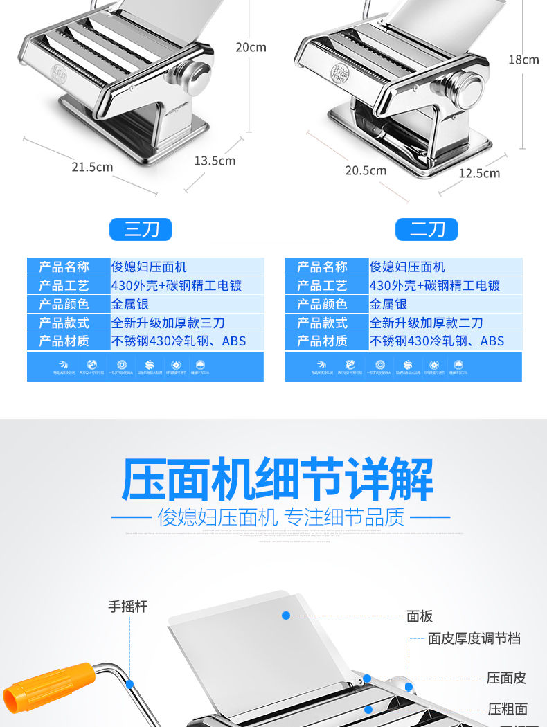 商品名稱(chēng):家用面條機(jī)小型多功能壓面機(jī)手動(dòng)不銹鋼搟面機(jī)餃子餛飩皮機(jī)
