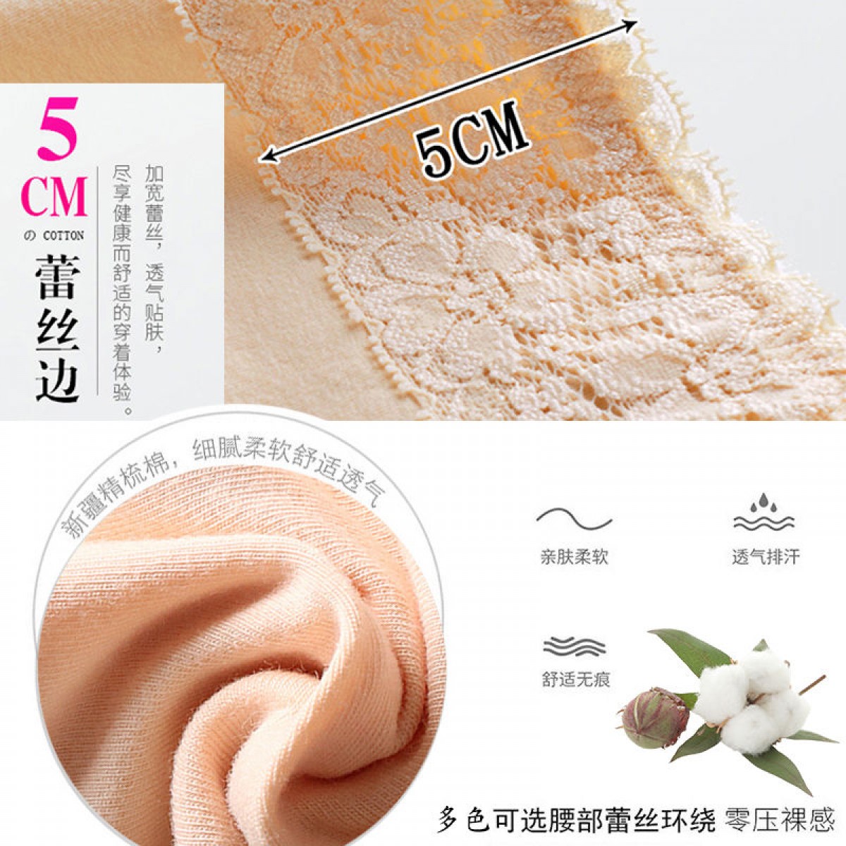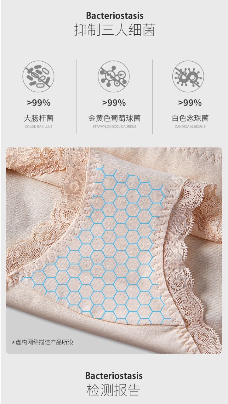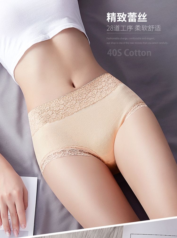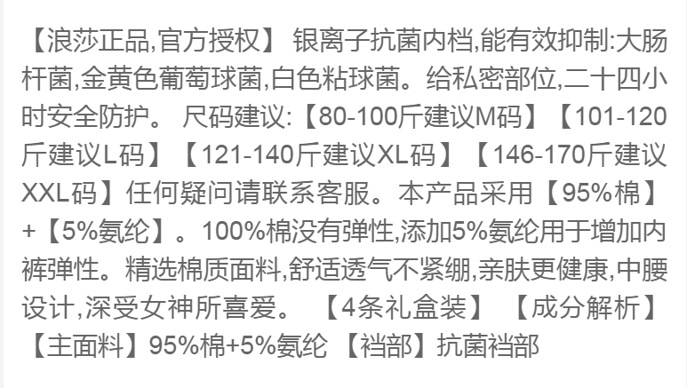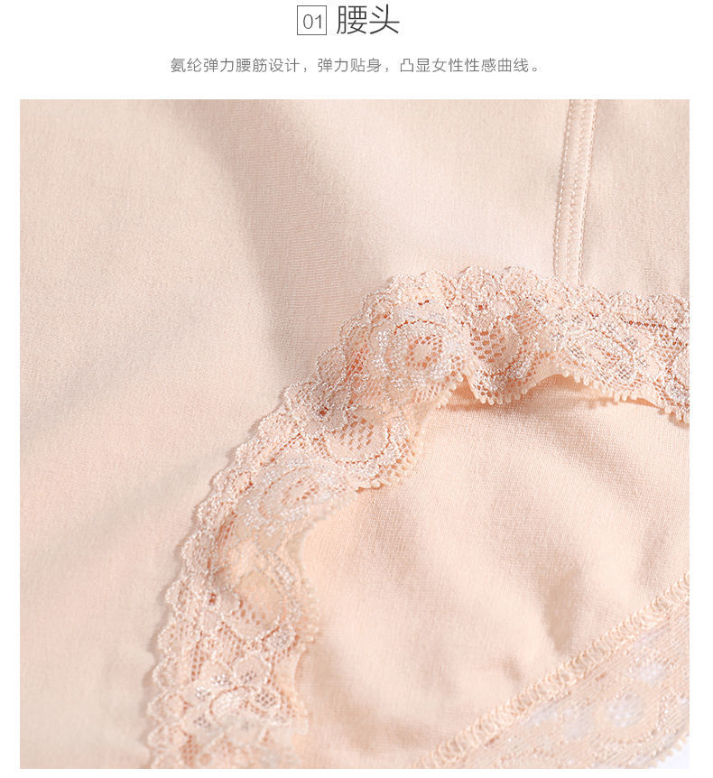 商品名稱:浪莎 4條 95%棉 中腰銀離子抗菌內(nèi)褲女蕾絲純色棉質(zhì)女士?jī)?nèi)褲