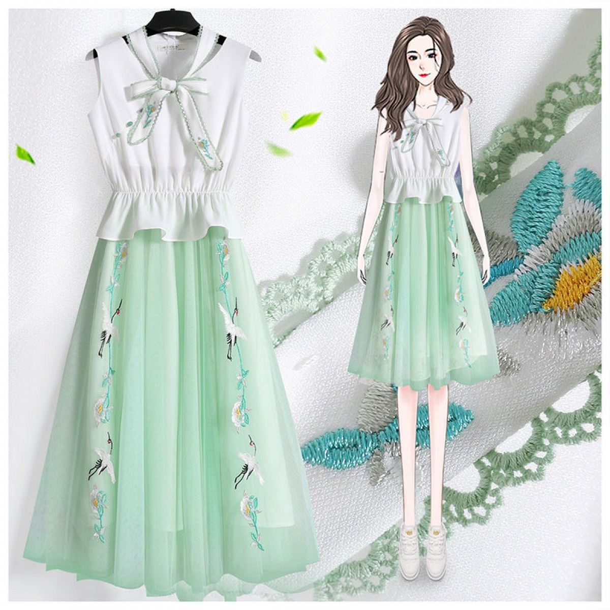 商品名稱:兩件套200斤胖妹妹夏裝新款上衣半身裙大碼女裝古裝衣服套裝女