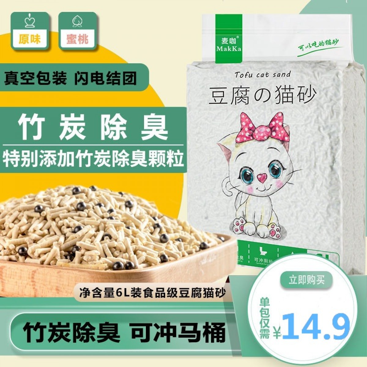 豆腐貓砂除臭貓沙6L豆腐砂豆腐渣無塵大顆粒結(jié)團原味