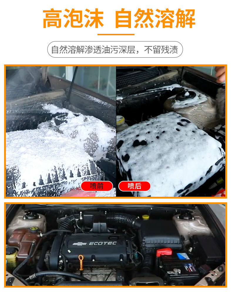 汽車(chē)發(fā)動(dòng)機(jī)外部清洗劑引擎機(jī)艙倉(cāng)外表去重油污泡沫清潔液機(jī)頭水 650ml/瓶