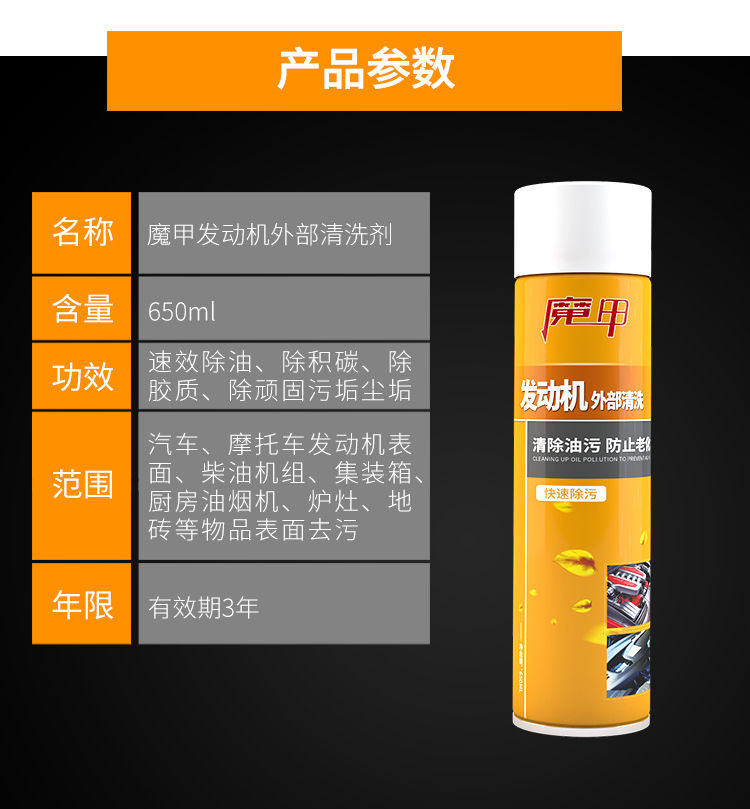 商品名稱(chēng):汽車(chē)發(fā)動(dòng)機(jī)外部清洗劑引擎機(jī)艙倉(cāng)外表去重油污泡沫清潔液機(jī)頭水 650ml/瓶
