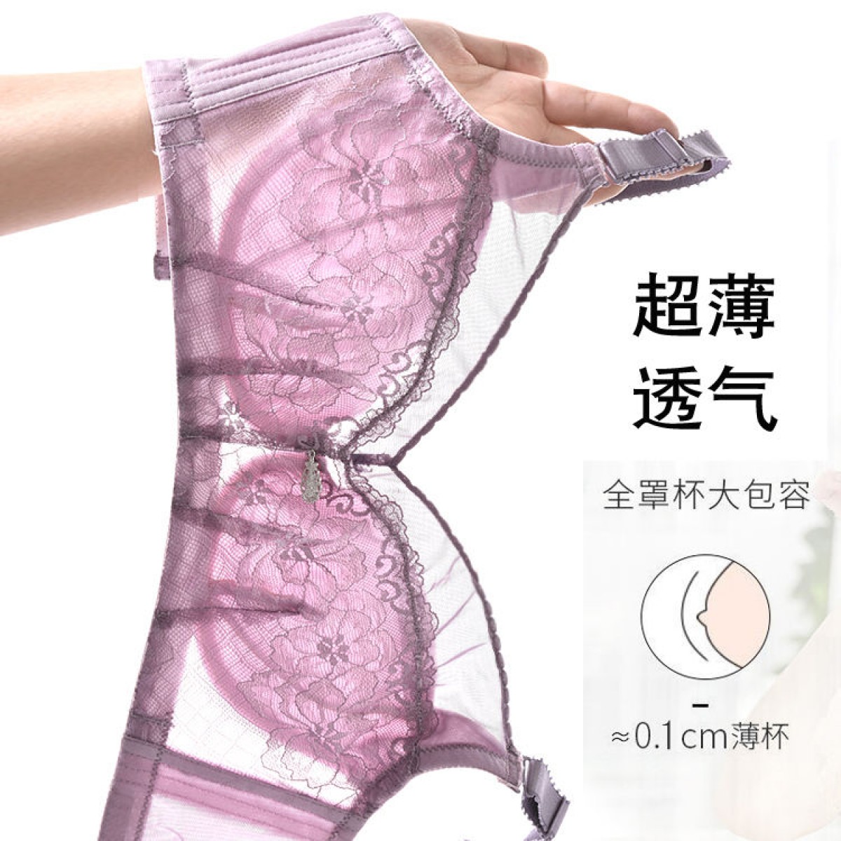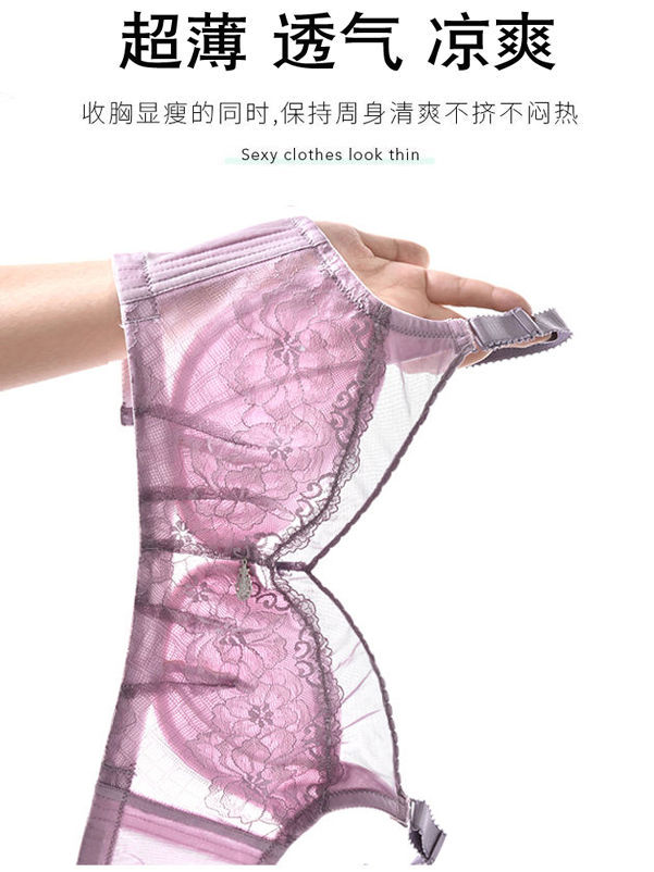 無鋼圈超薄款文胸聚攏大碼胸罩蕾絲內(nèi)衣女士套裝性感大胸顯小夏季