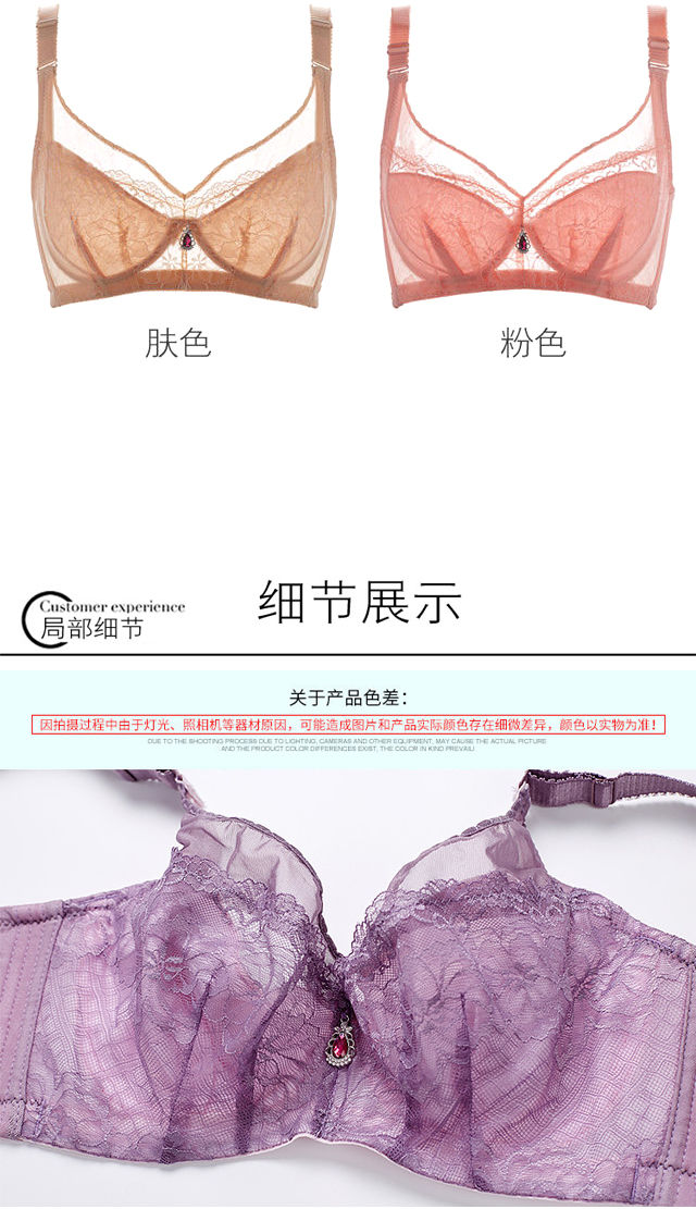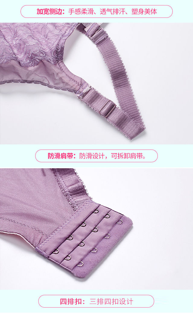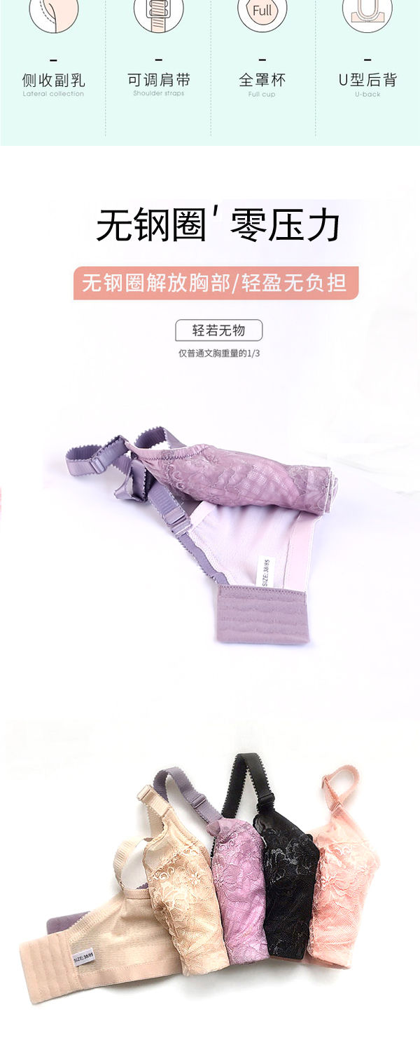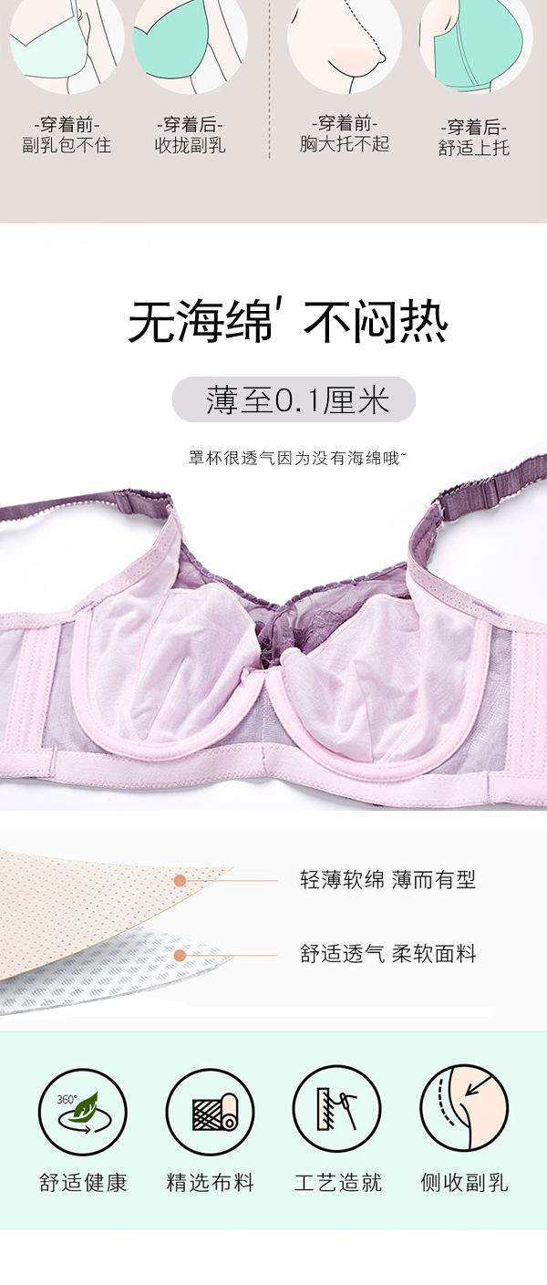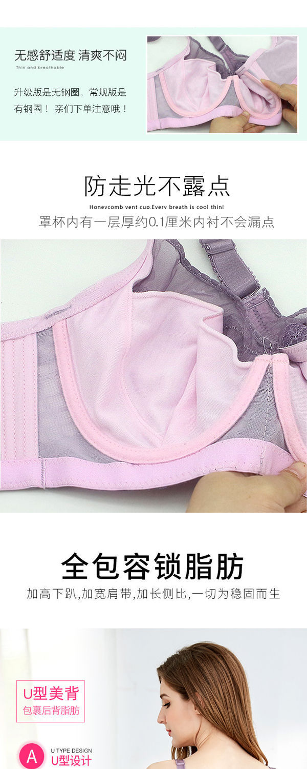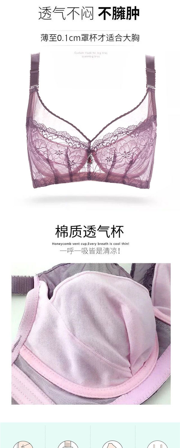 商品名稱:無鋼圈超薄款文胸聚攏大碼胸罩蕾絲內(nèi)衣女士套裝性感大胸顯小夏季