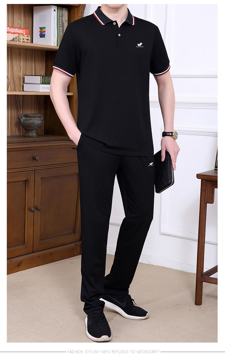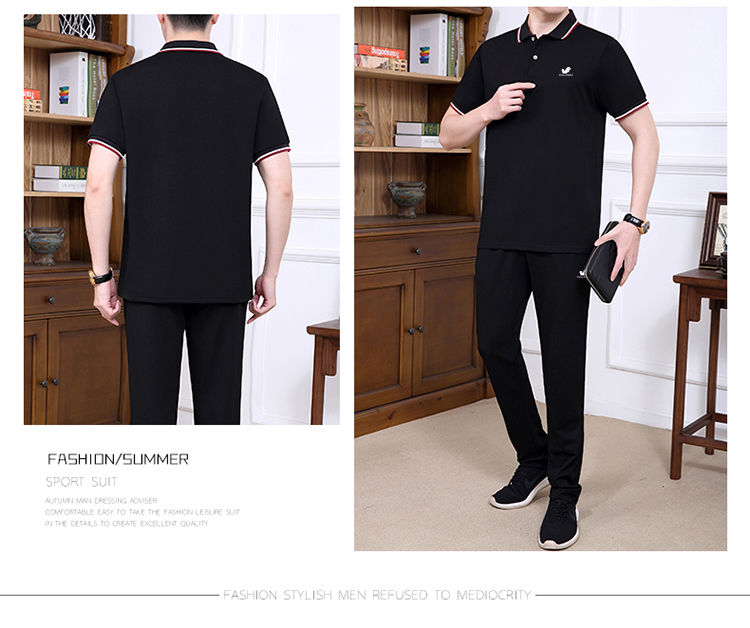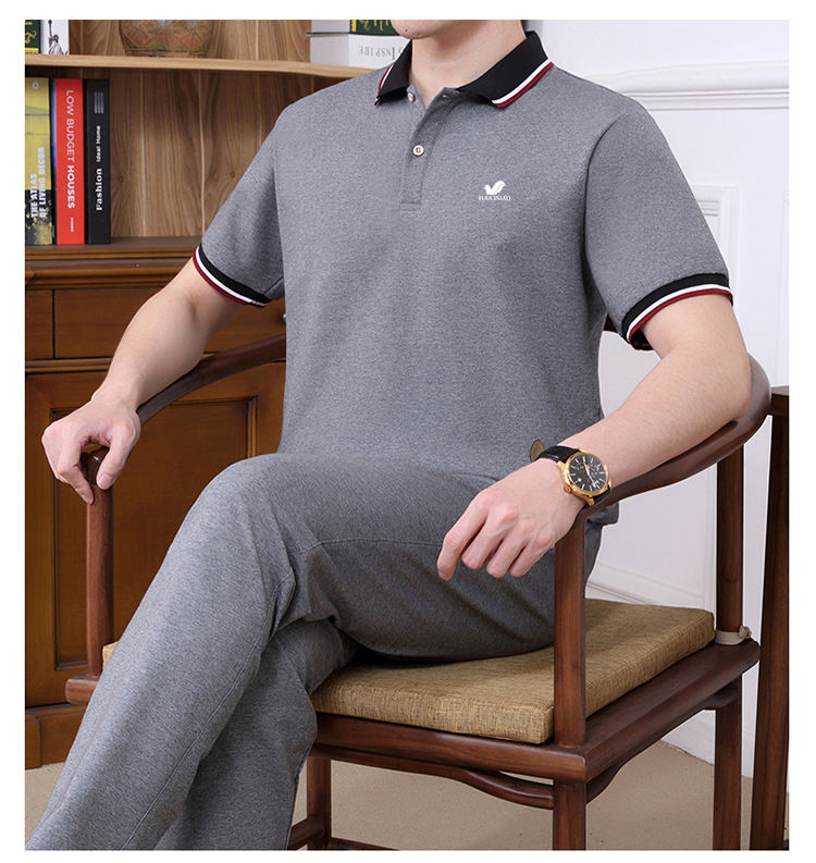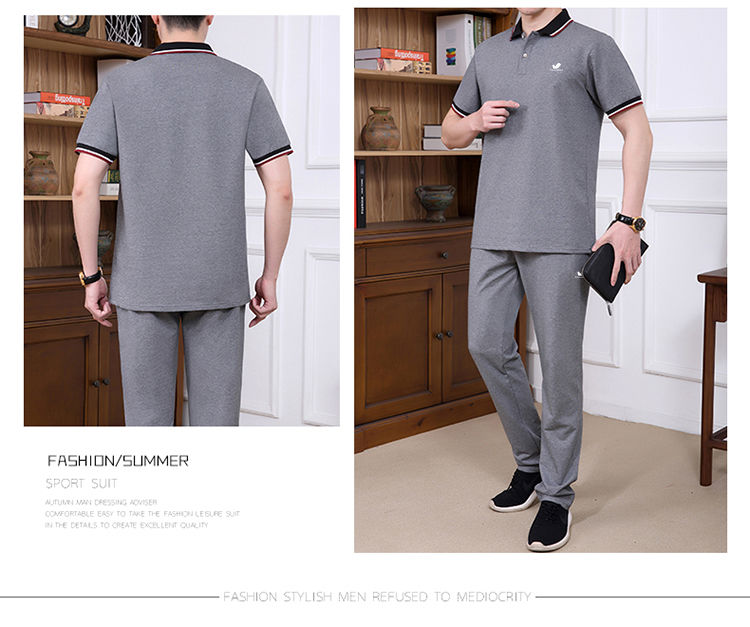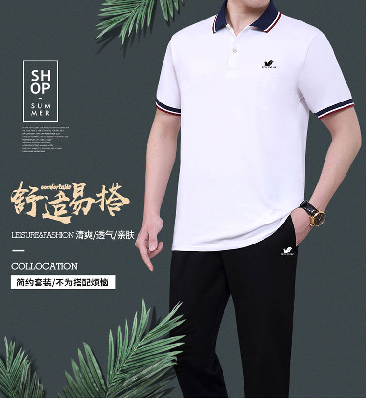 商品名稱:純棉【富貴鳥】夏季男士運(yùn)動休閑套裝爸爸裝中老年父親短袖二件套