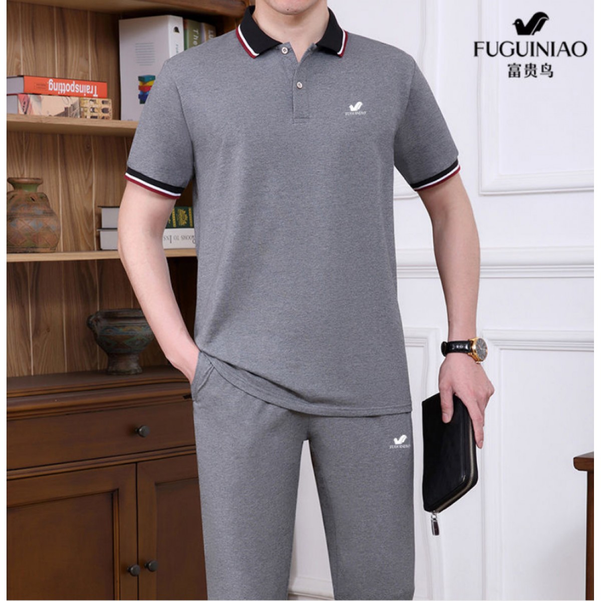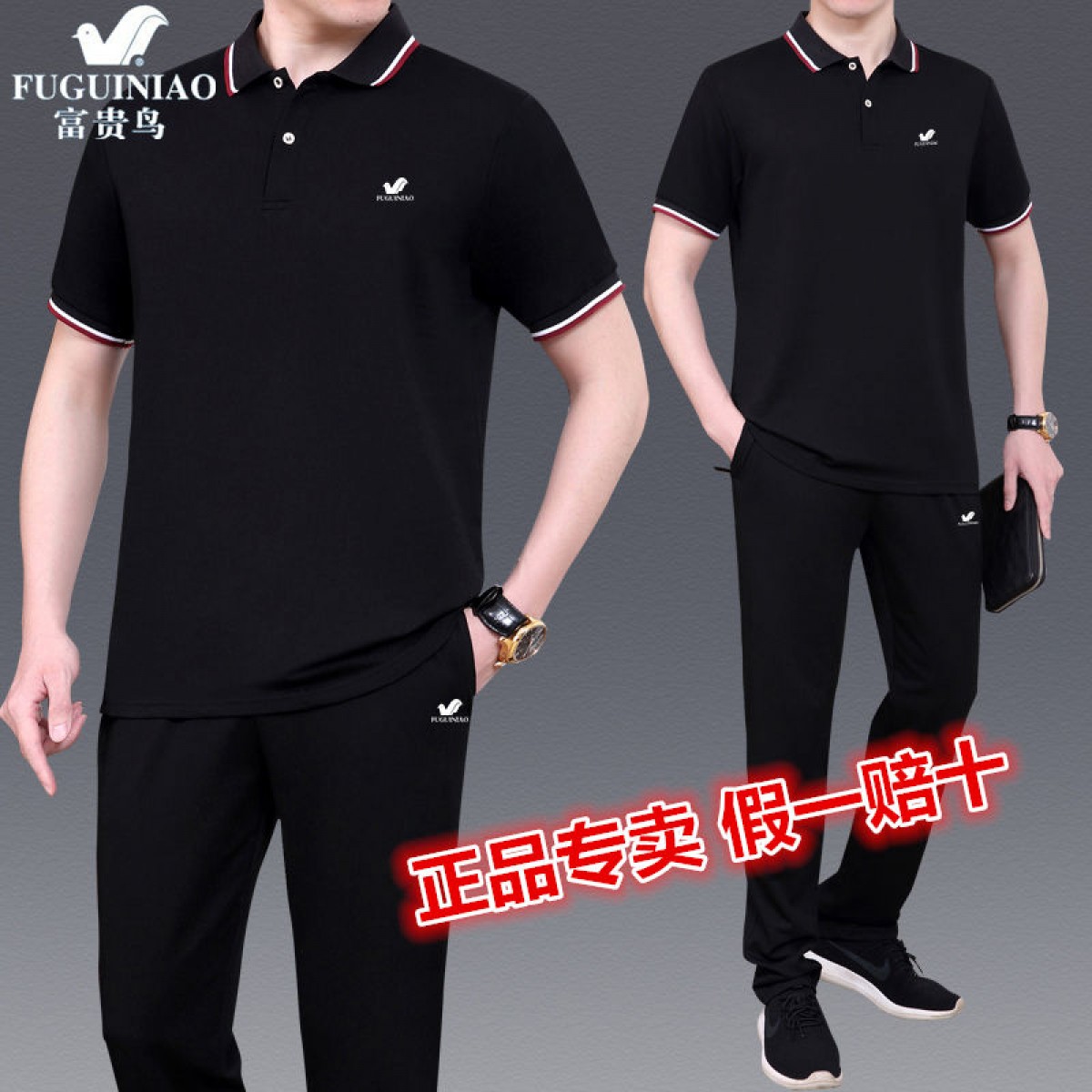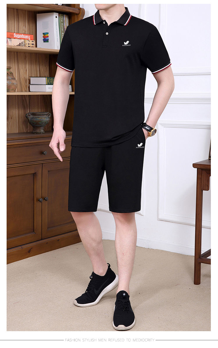 商品名稱:純棉【富貴鳥】夏季男士運(yùn)動休閑套裝爸爸裝中老年父親短袖二件套