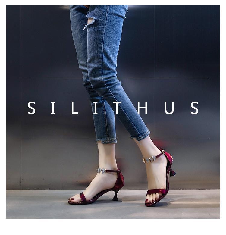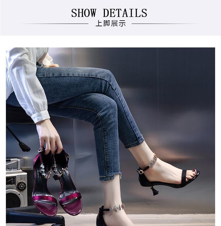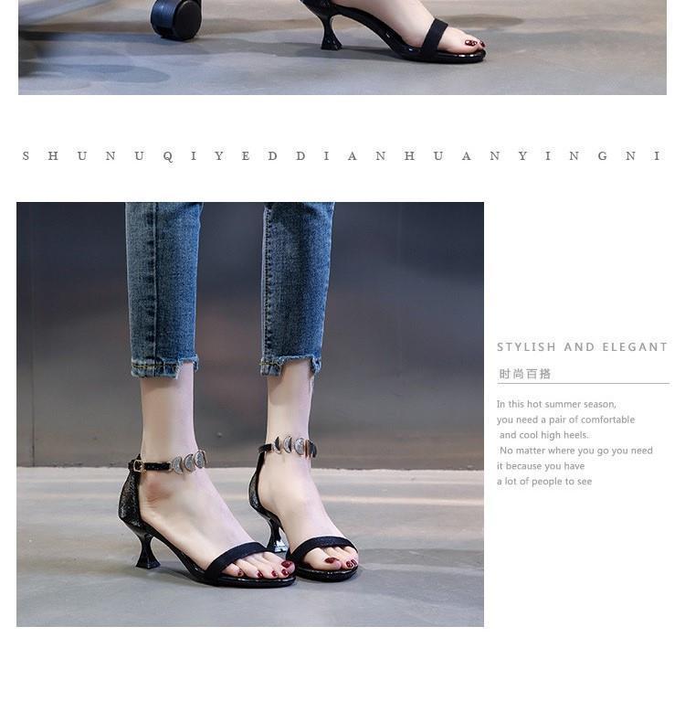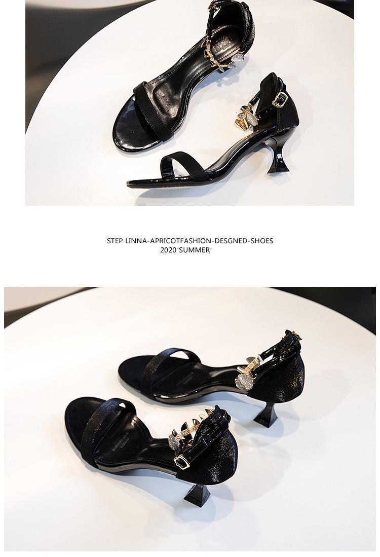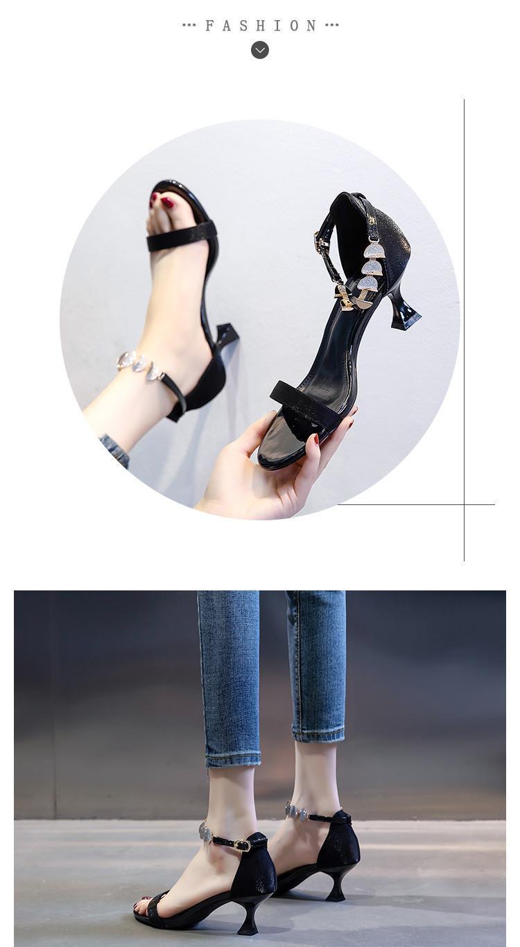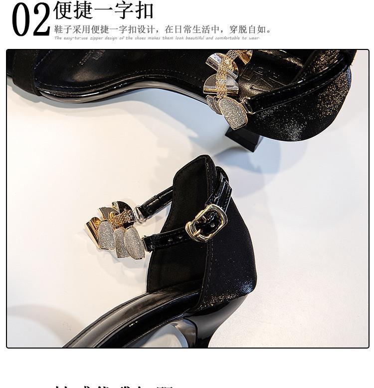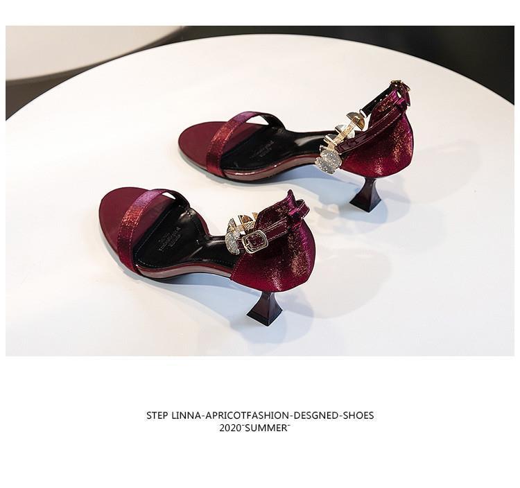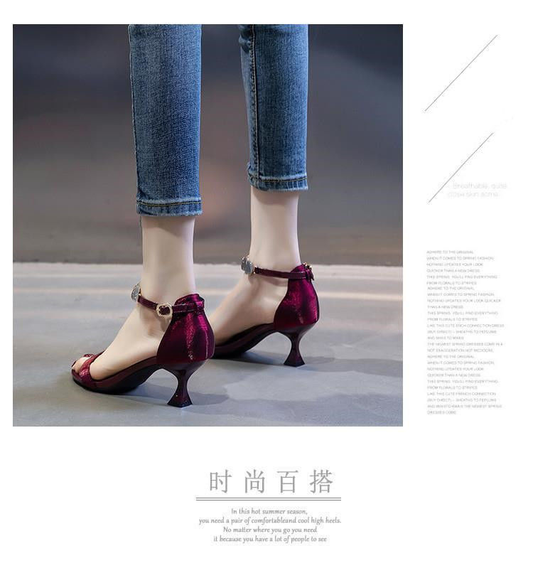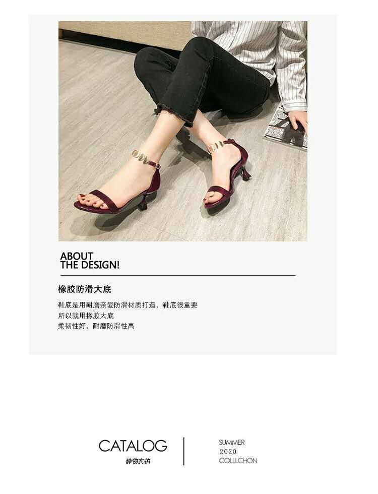 商品名稱:2020新款紅色涼鞋女夏季圓頭低細(xì)跟一字扣時(shí)尚外穿中跟百搭鞋子女