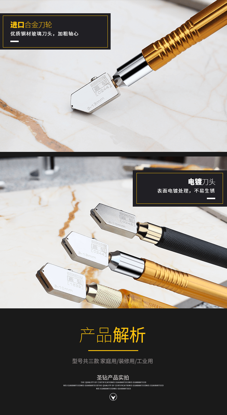 商品名稱:圣鉆玻璃刀多功能瓷磚金剛石家用劃厚玻璃瓷磚玻璃刀頭瓷磚切割器
