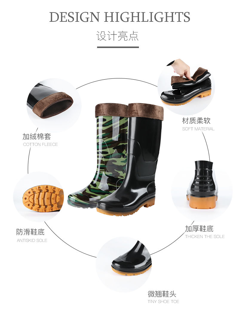 商品名稱:男士高筒水鞋加絨短筒中筒防水雨鞋工地廚房釣魚雨靴耐酸堿膠鞋男
