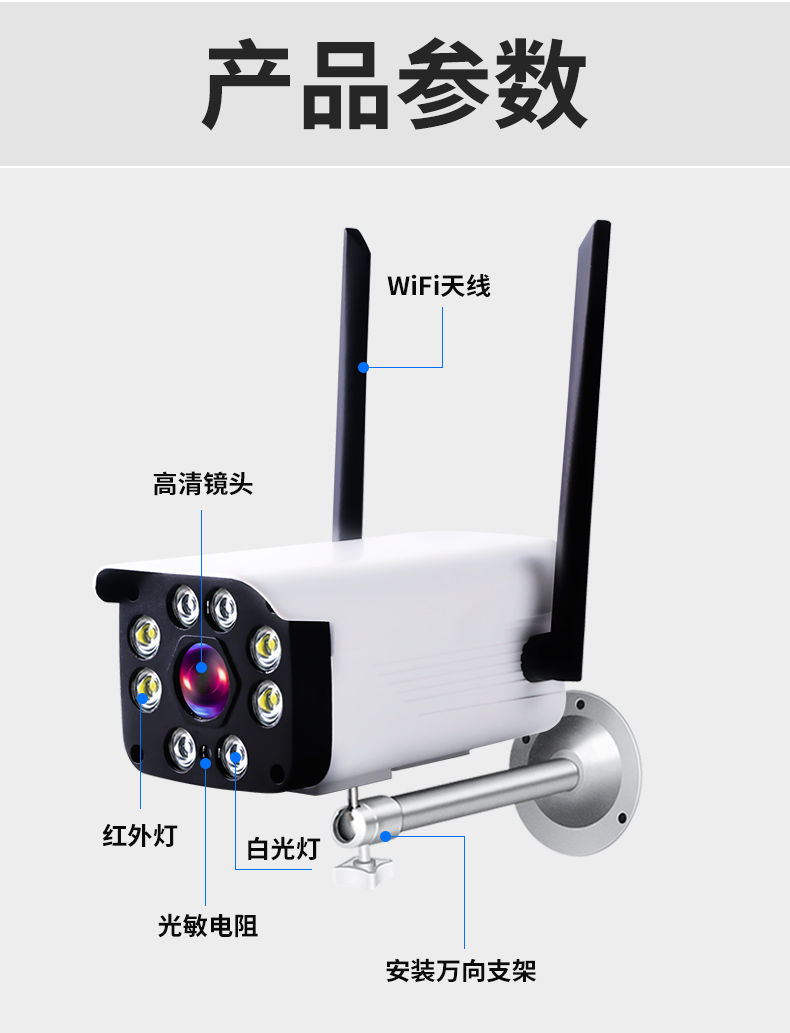 商品名稱:家用監(jiān)控攝像頭室外無線wifi連手機遠程監(jiān)控器高清夜視防水
