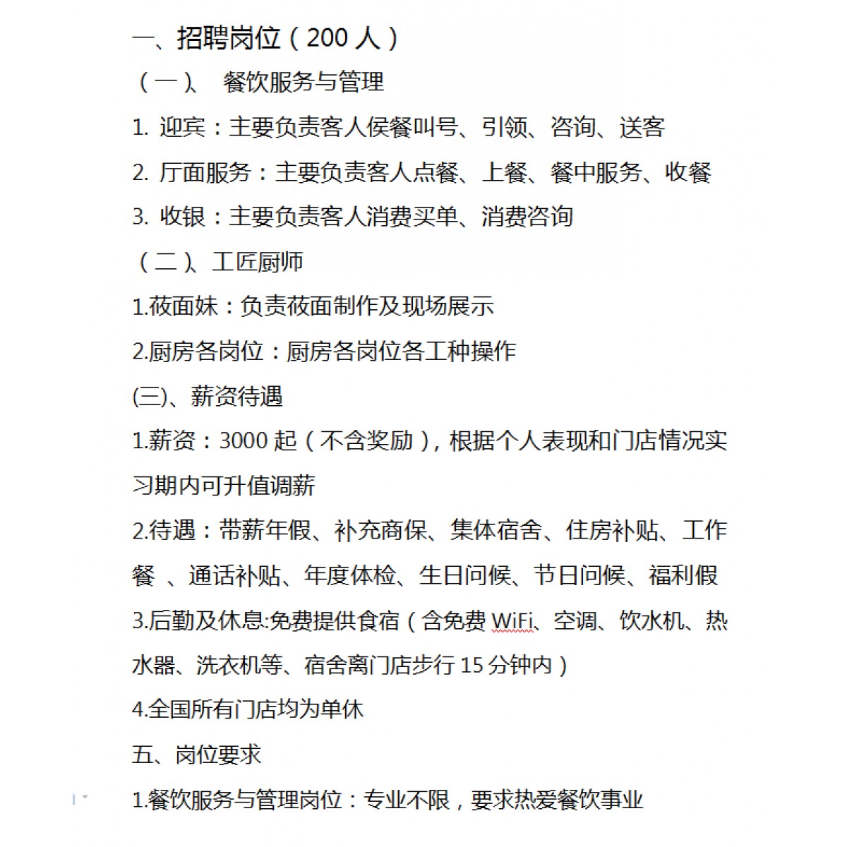 5、崗位要求:餐飲服務與管理崗位:專業(yè)不限,要求熱愛餐飲事業(yè)