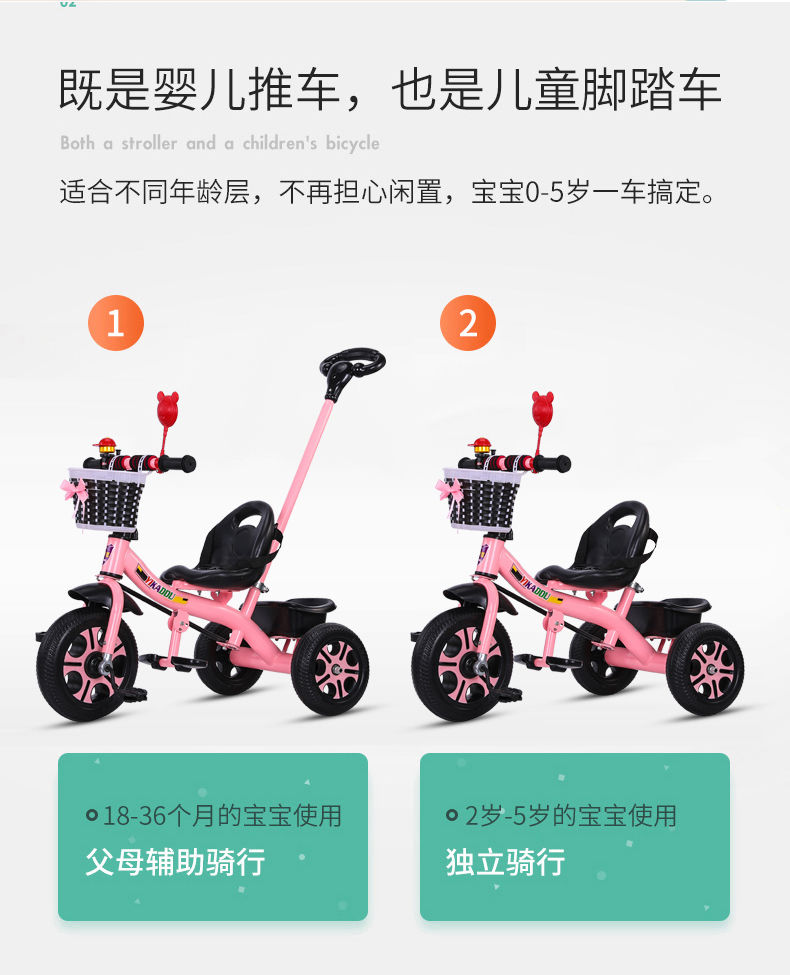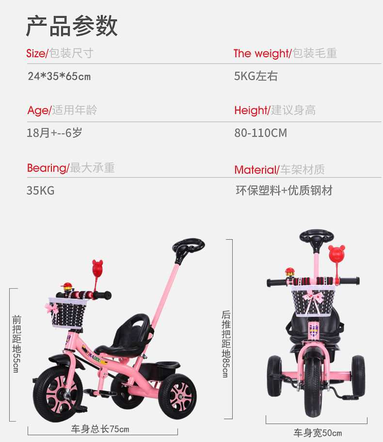 商品名稱(chēng):兒童三輪車(chē)腳踏車(chē)小孩腳踏車(chē)2-6歲手推車(chē)自行車(chē)兒童腳蹬車(chē)1-3-5歲