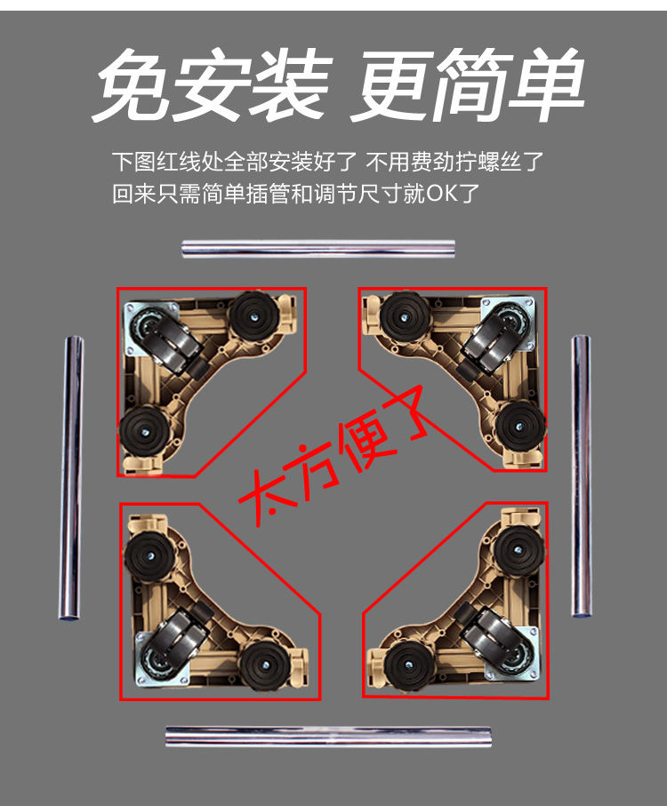 商品名稱:海爾洗衣機(jī)底座專用移動(dòng)萬(wàn)向輪支架全自動(dòng)8/9/10公斤滾筒波輪托架