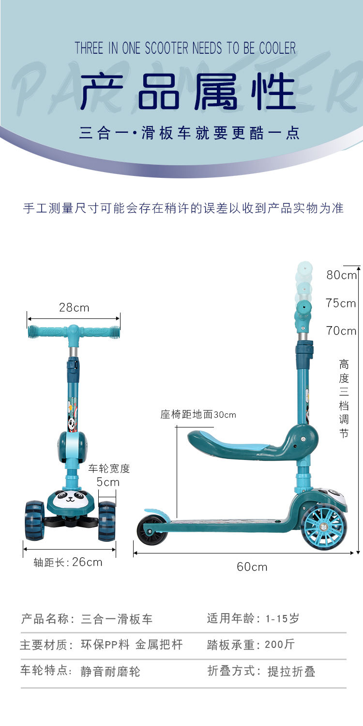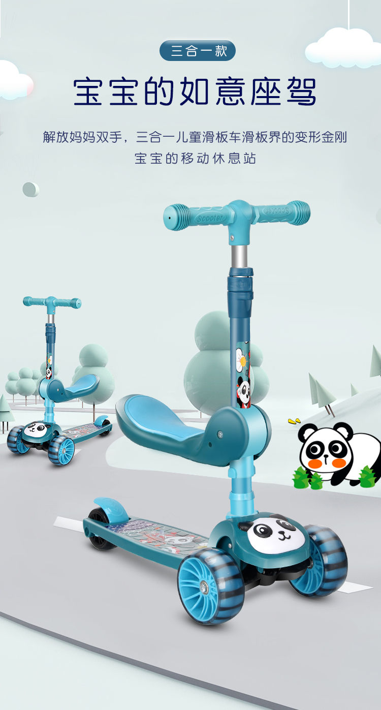 商品名稱:滑板車兒童1-3-6歲可坐三合一男女寶寶音樂閃光小孩踏板車溜溜車