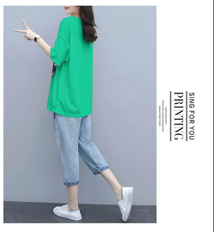 商品名稱:2020年夏季單/套裝新款韓版寬松大碼拼貼刺繡休閑時尚套裝女夏裝