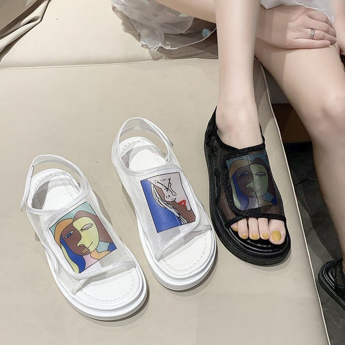 鞋子女夏2020年新款學(xué)生百搭歐根紗網(wǎng)鞋平底一字帶仙女涼鞋ins潮