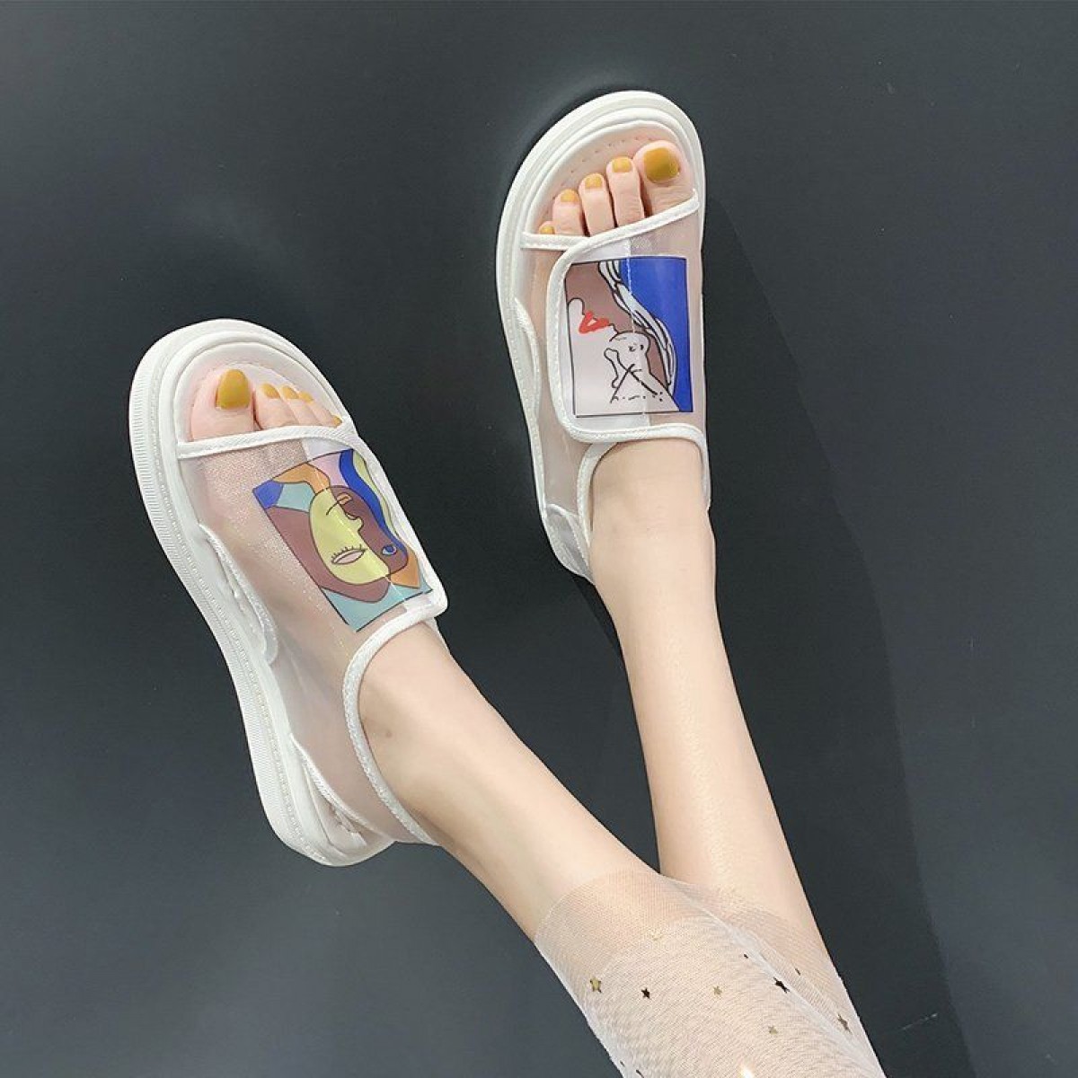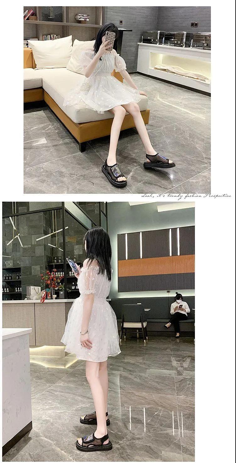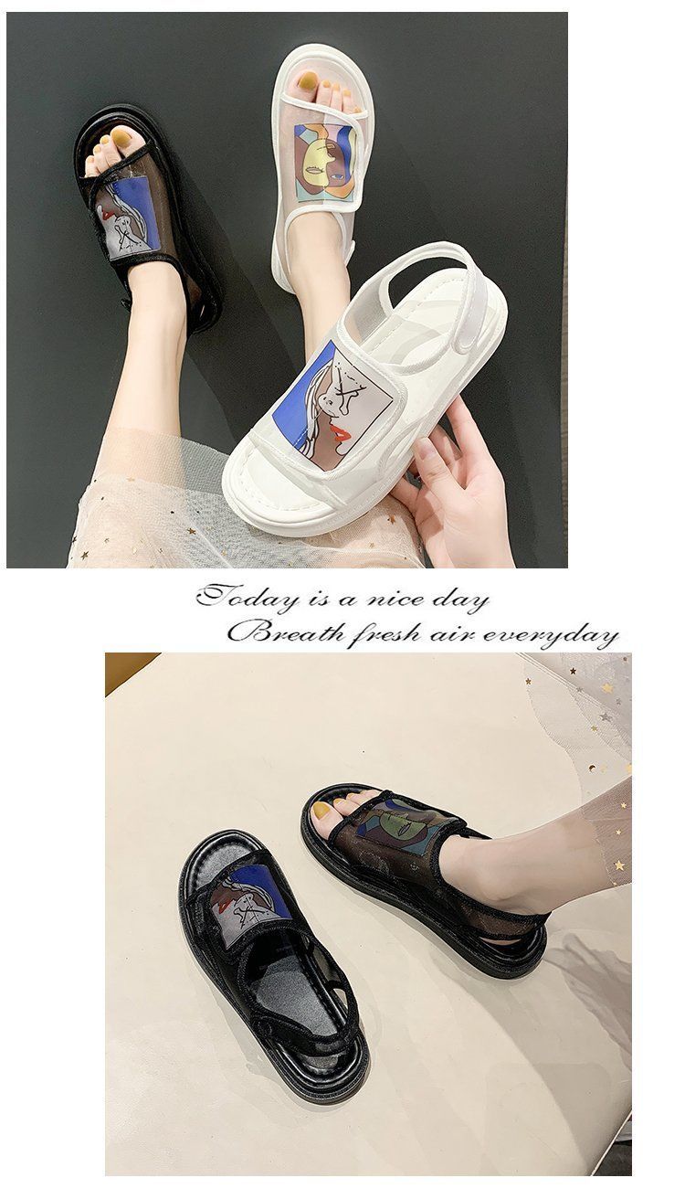 商品名稱:鞋子女夏2020年新款學(xué)生百搭歐根紗網(wǎng)鞋平底一字帶仙女涼鞋ins潮