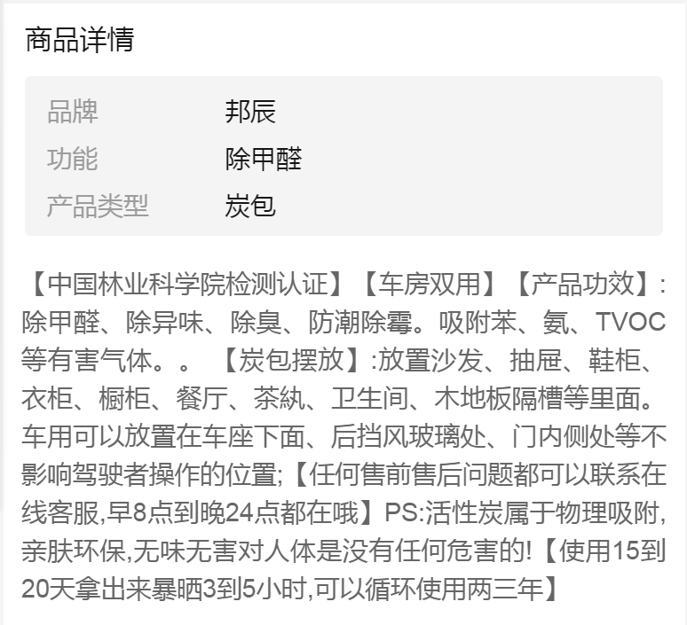 商品名稱:活性炭除甲醛新房家用急入住竹炭包吸味去甲醛強(qiáng)力型車(chē)除味包