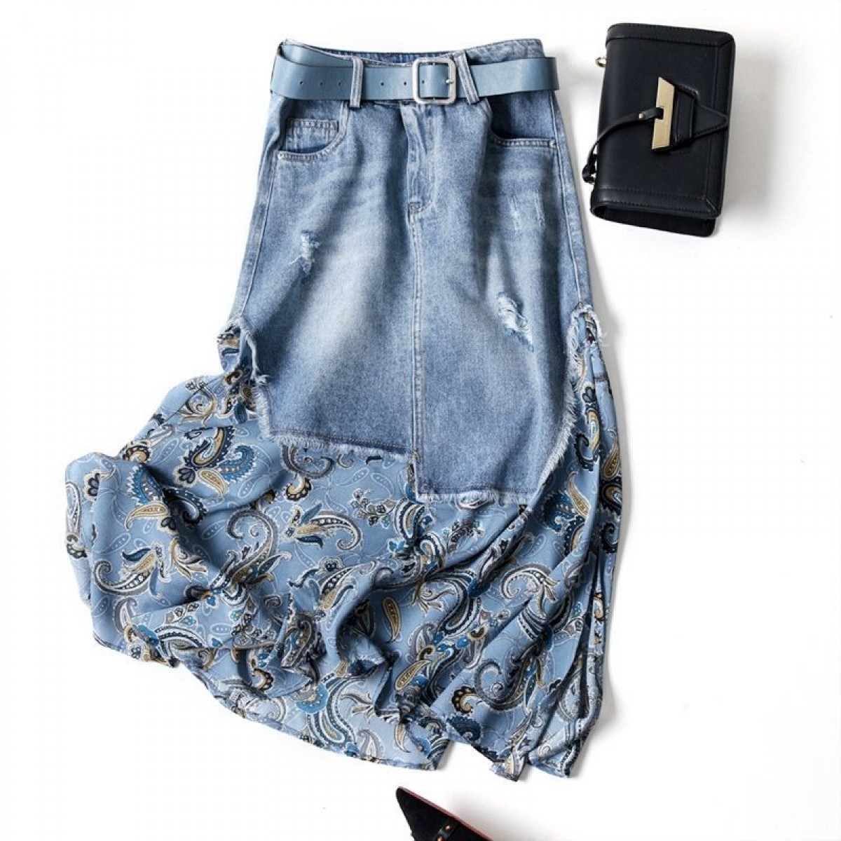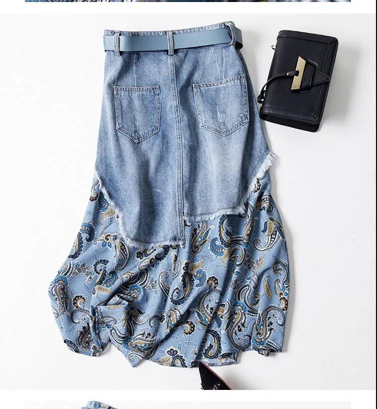 商品名稱:【專柜品質(zhì)】天絲牛仔裙半身裙女雪紡印花不規(guī)則時尚中長半裙