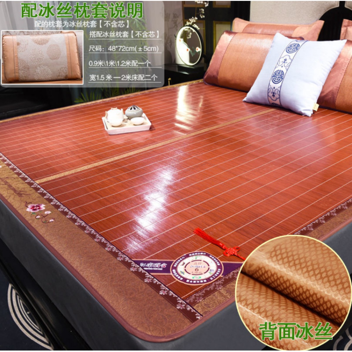 商品名稱:南極人涼席可折疊1.8米床1.5m草席1.2學(xué)生宿舍雙面冰絲單人竹席子