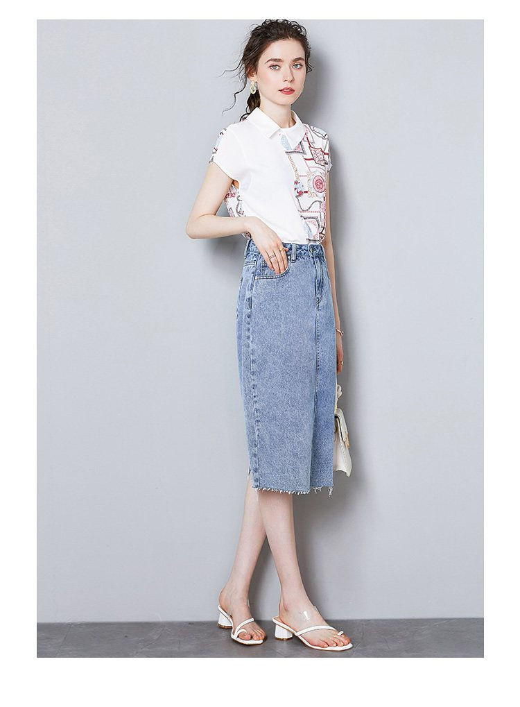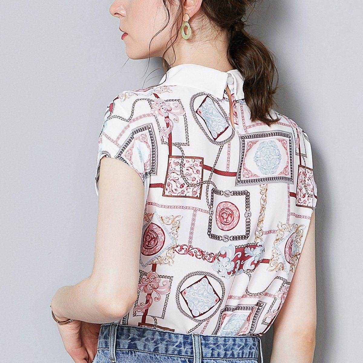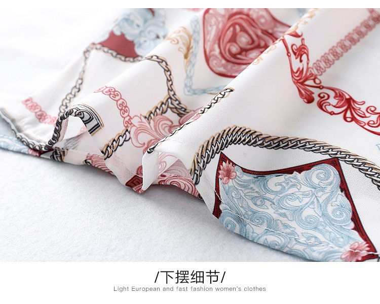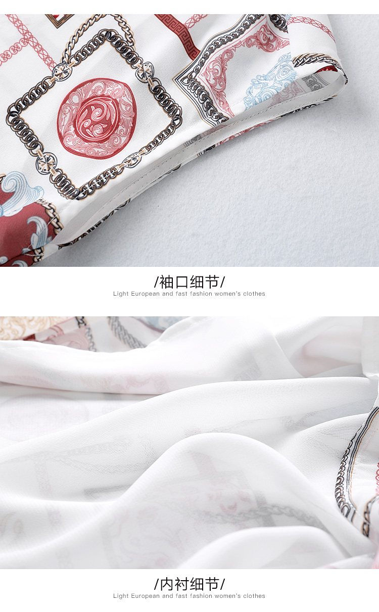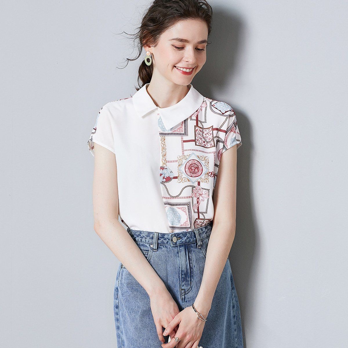 2020年夏季新款女士休閑簡約時尚雪紡印花拼接不對稱領子襯衫