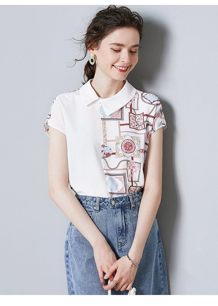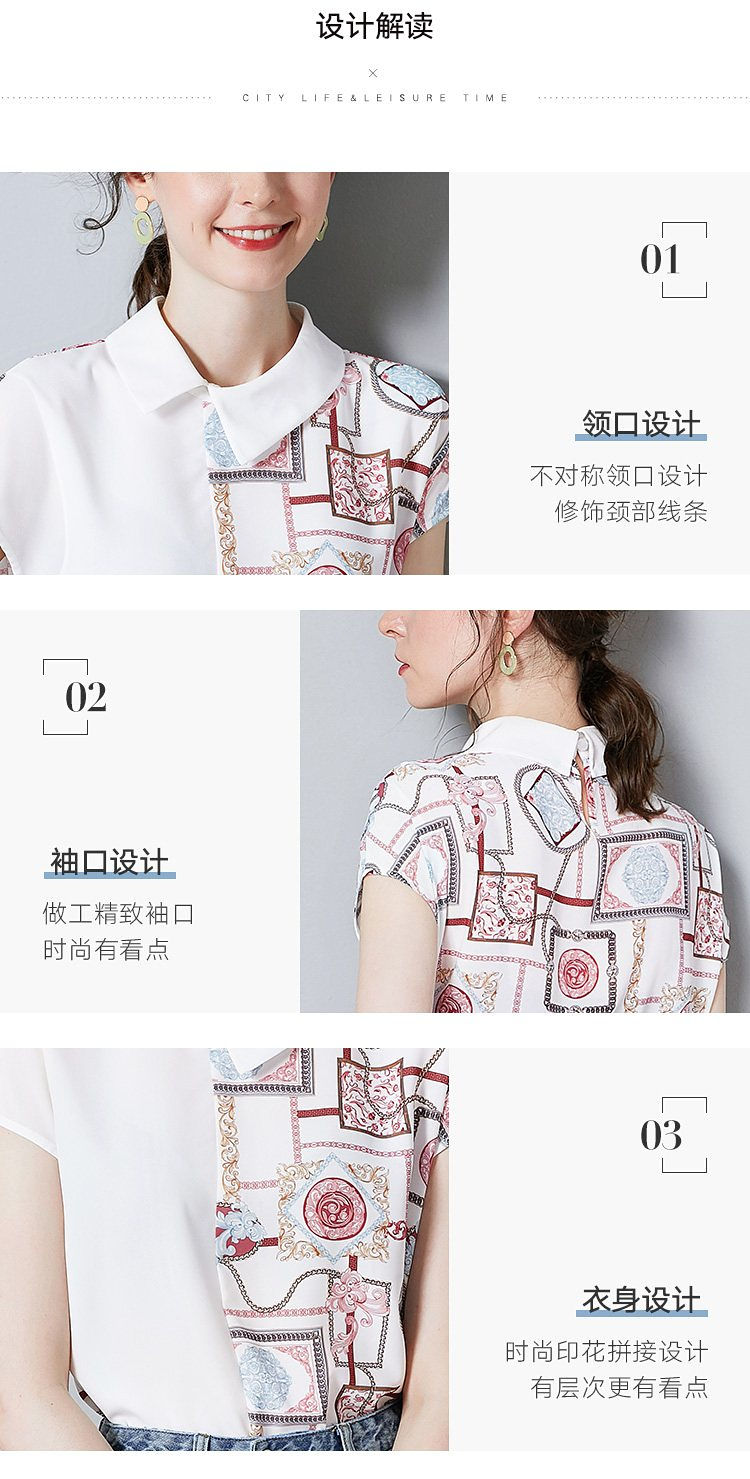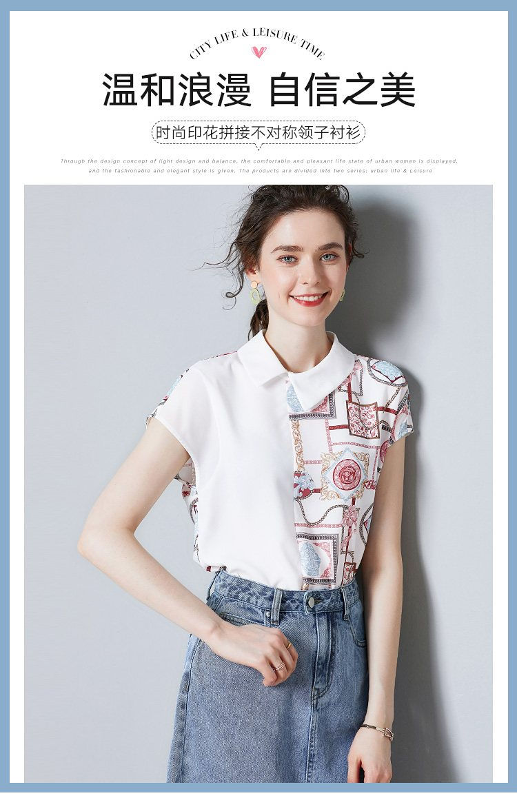 商品名稱:2020年夏季新款女士休閑簡約時尚雪紡印花拼接不對稱領子襯衫