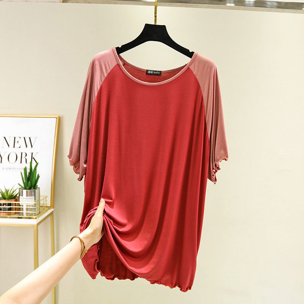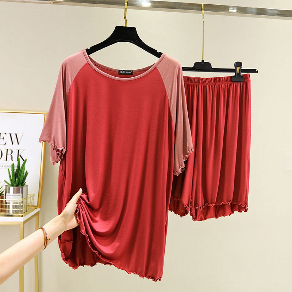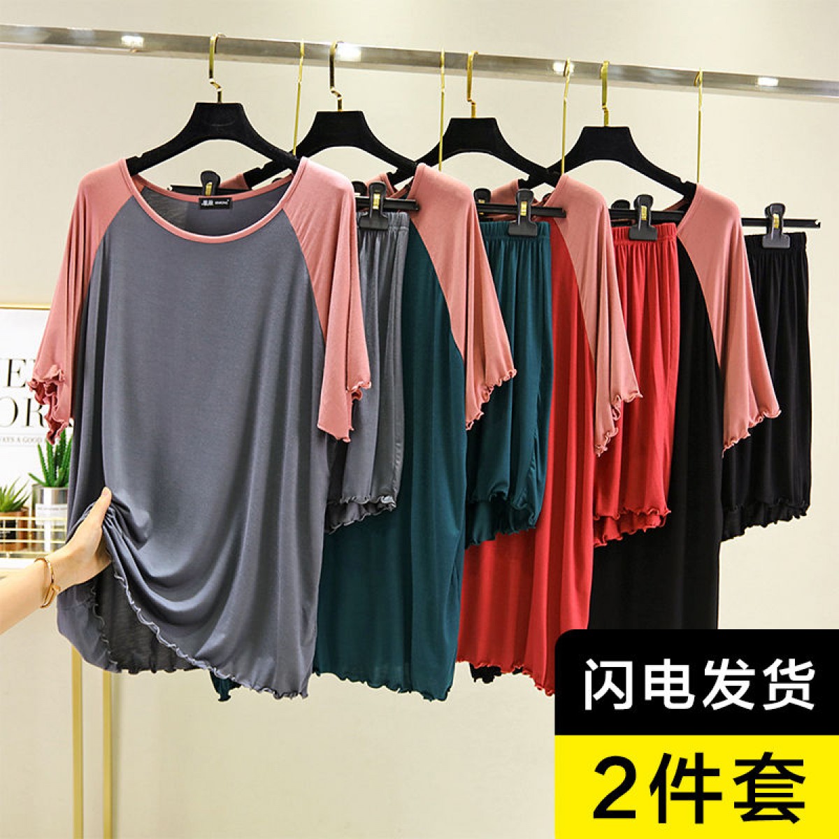 莫代爾T恤女夏季外穿打底衫短袖拼接薄款短褲睡衣兩件套裝家居服