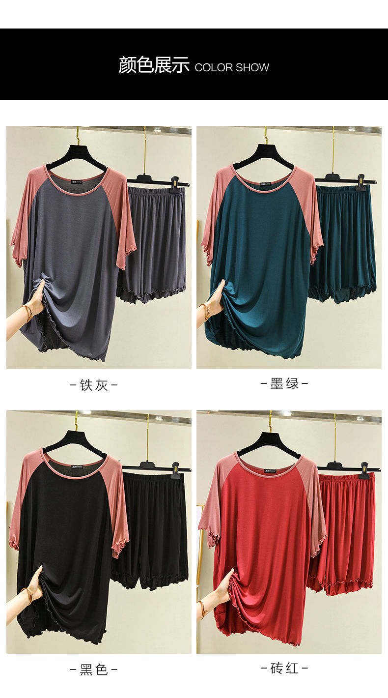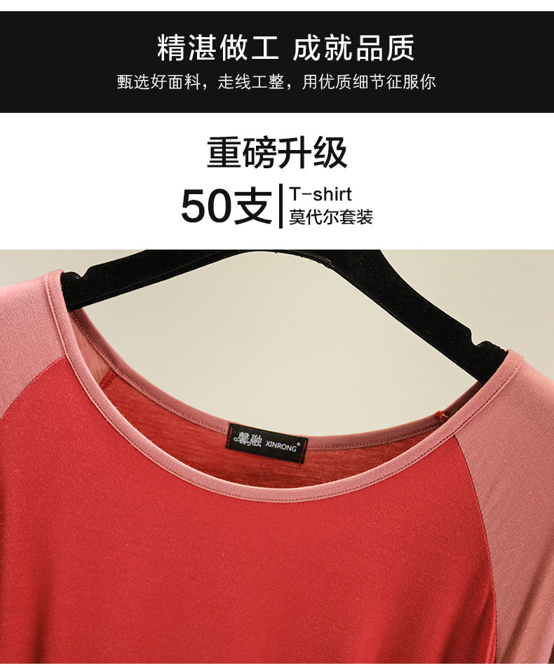 商品名稱:莫代爾T恤女夏季外穿打底衫短袖拼接薄款短褲睡衣兩件套裝家居服