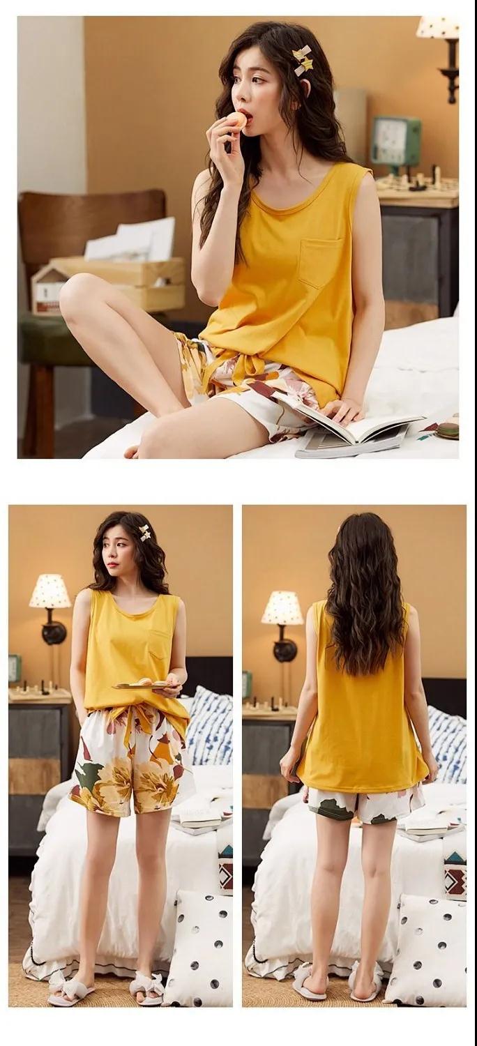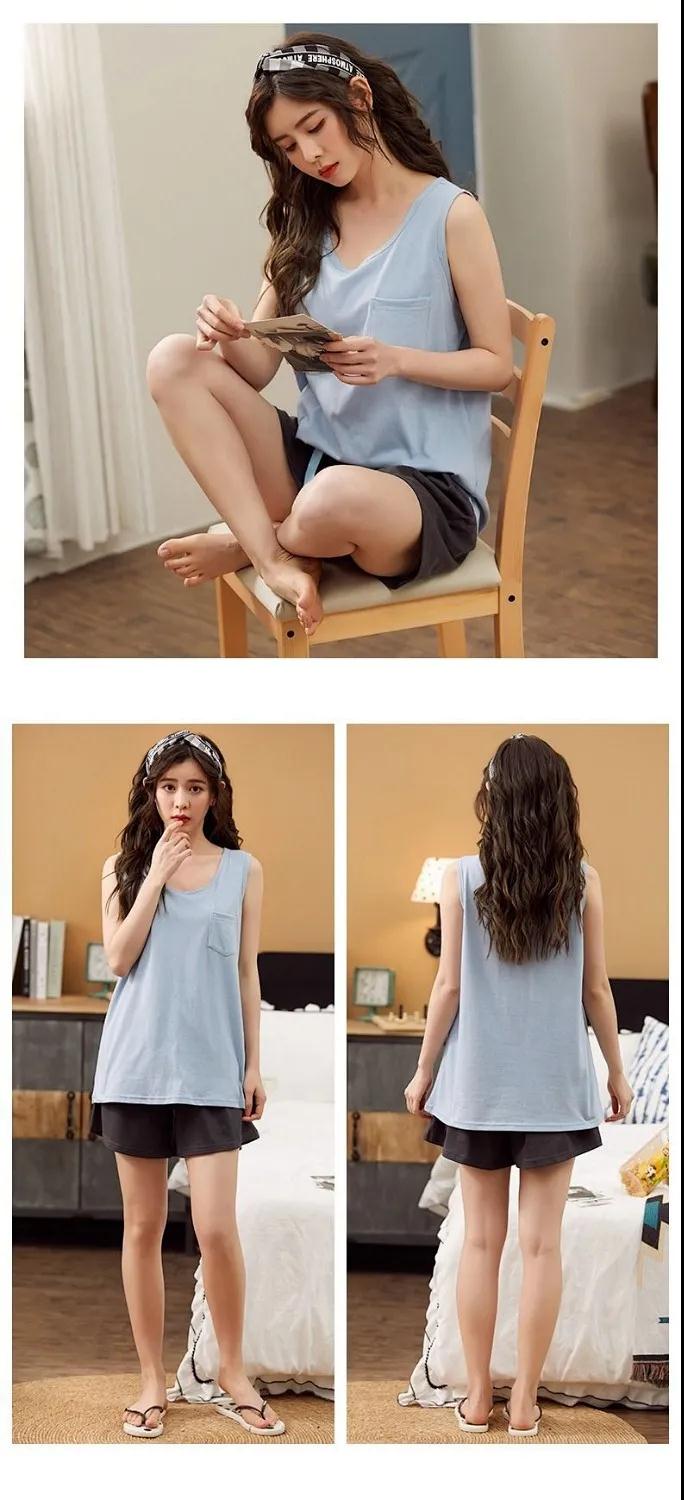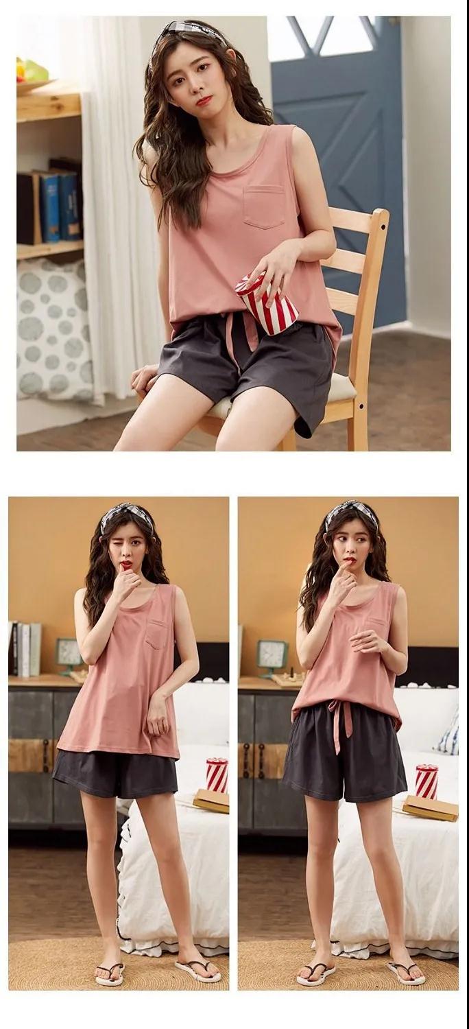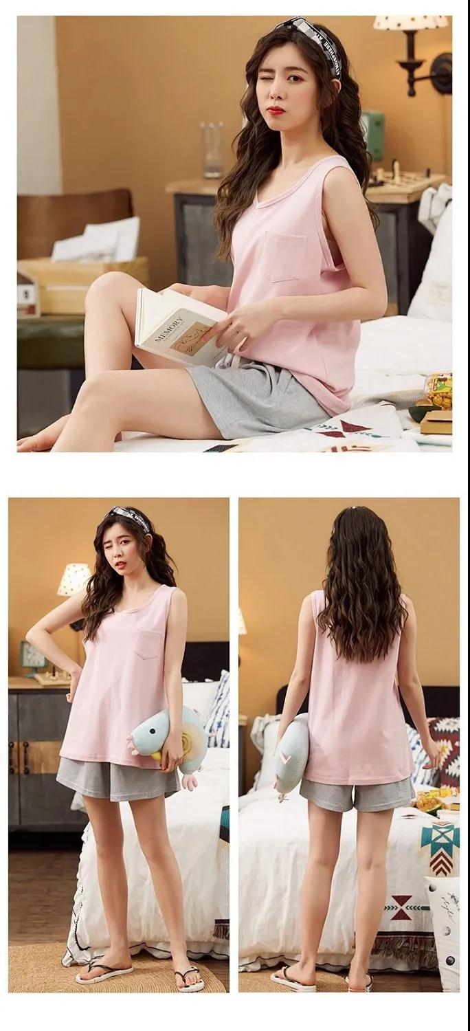 商品名稱:無袖睡衣女夏純棉寬松學(xué)生可外穿韓版背心短褲兩件套大碼睡衣女
