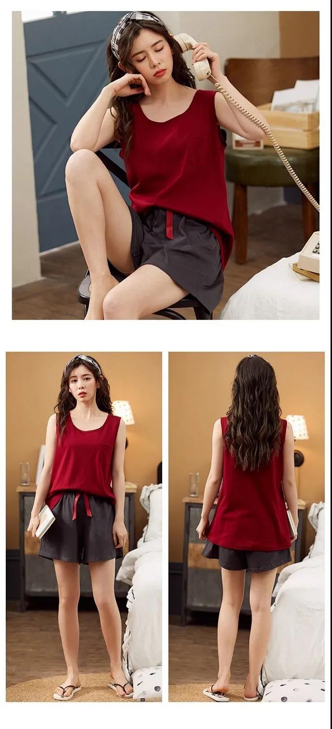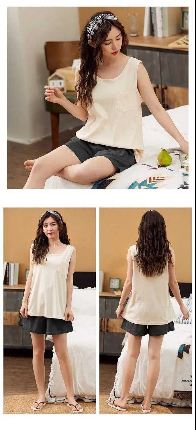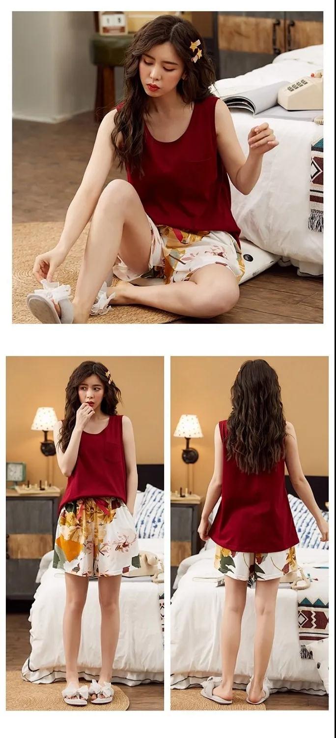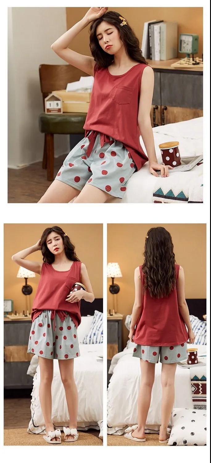 商品名稱:無袖睡衣女夏純棉寬松學(xué)生可外穿韓版背心短褲兩件套大碼睡衣女